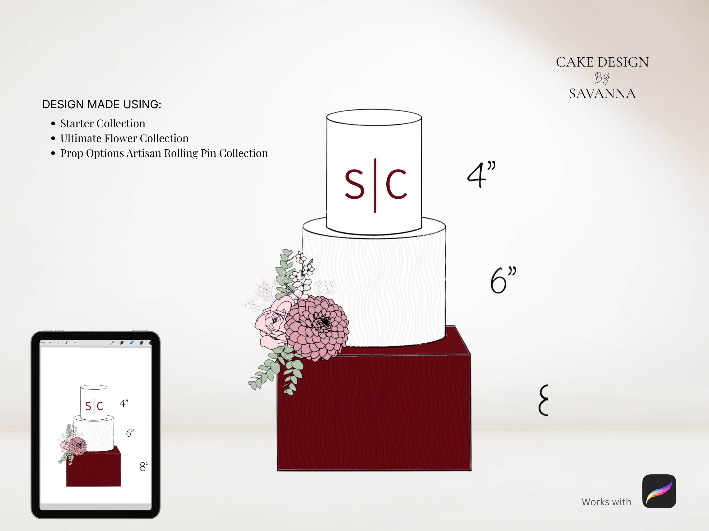The perfect way to sketch your cake designs. Use these stamps with the Procreate App (available on iPhone and iPad) to design beautiful cakes for your customers.