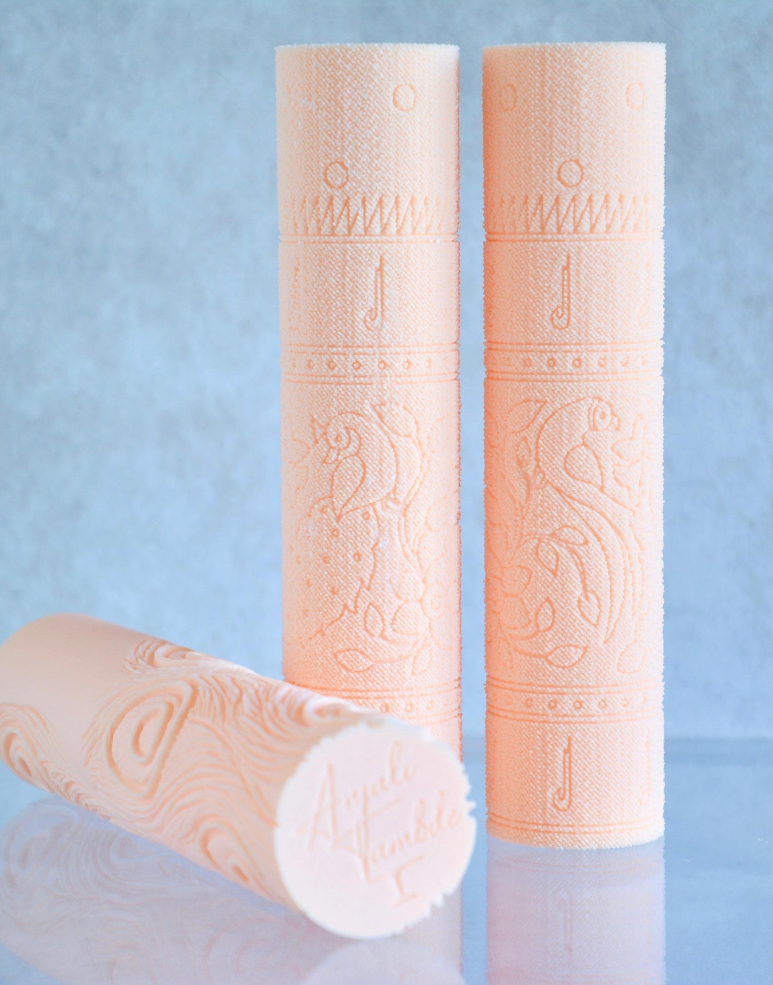 For an even texture across the whole surface, roll slowly and smoothly with steady hands. Apply consistent pressure through the centre and both ends of the rolling pin as you roll, so the imprint stays uniform from edge to edge.