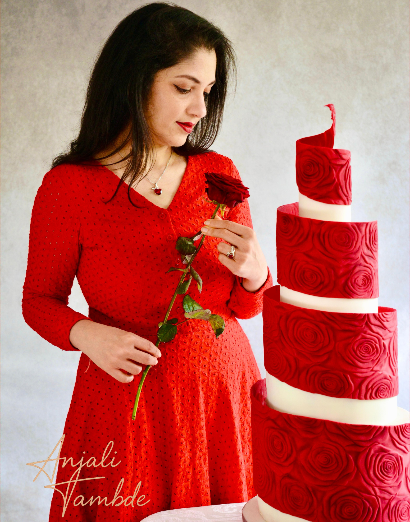 The Rosarium Rolling Pin – Anjali Tambde Collaboration delivers a bold, sculpted rose texture designed to make a confident statement. Developed in partnership with Anjali Tambde of Global Cake Toppers, this design creates defined floral impressions with depth and clarity across fondant, modelling chocolate and buttercream panels.