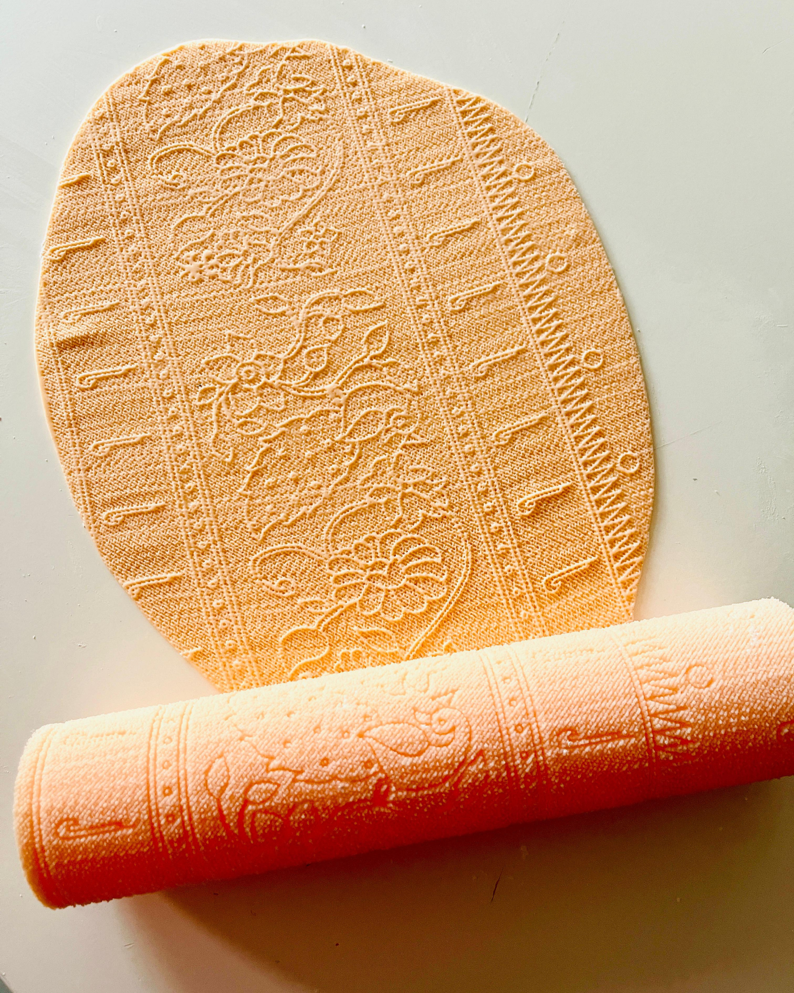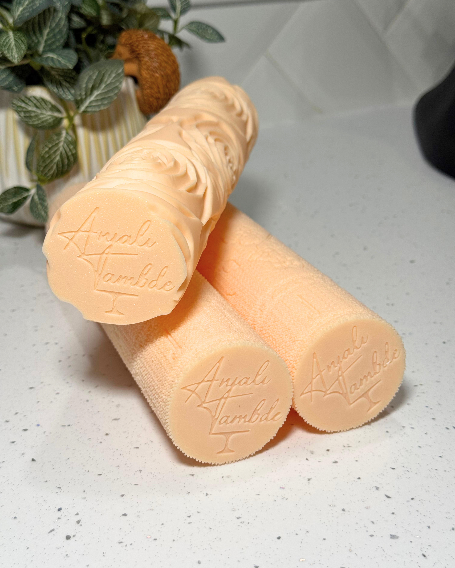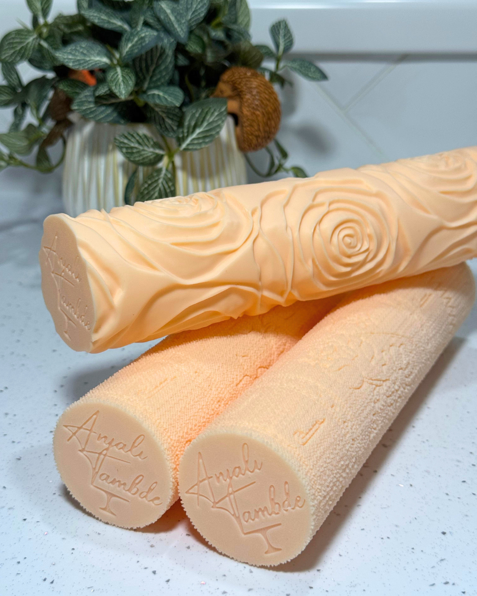 This is where her rolling pin collections come in—designed as a bridge between her worlds. Each rolling pin is created to translate the beauty of weaves, the richness of traditional pattern, the movement of brushstrokes, and the poetry of nature into edible texture. The result is a tool that doesn’t just emboss a design, it helps you create couture-inspired cakes with depth, narrative, and a signature finish. Whether you’re imprinting delicate florals, regal bird motifs, or textile-like borders, these designs are made to elevate your work with a refined, luxury impression turning every bake into a piece of art.