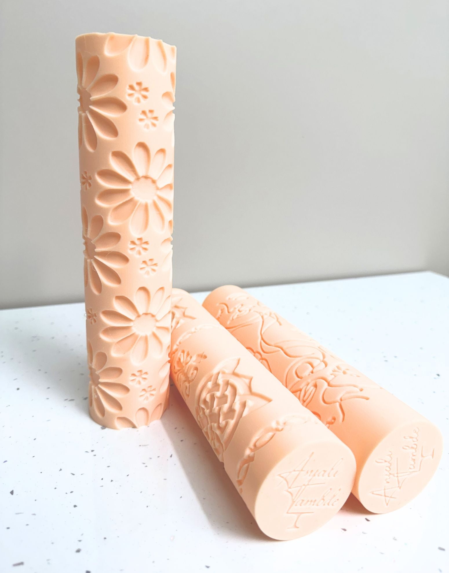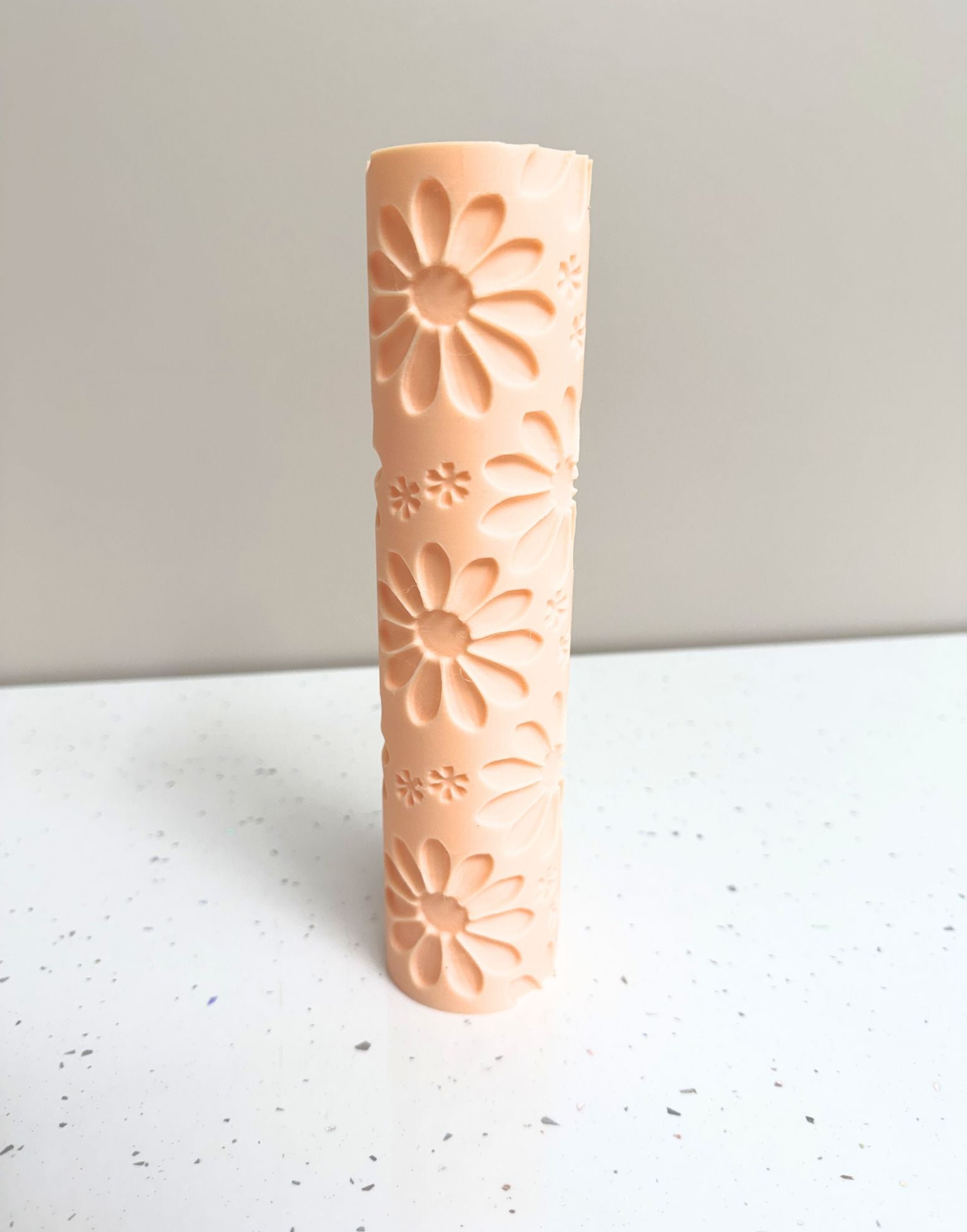 For an even texture across the whole surface, roll slowly and smoothly with steady hands. Apply consistent pressure through the centre and both ends of the rolling pin as you roll, so the imprint stays uniform from edge to edge.