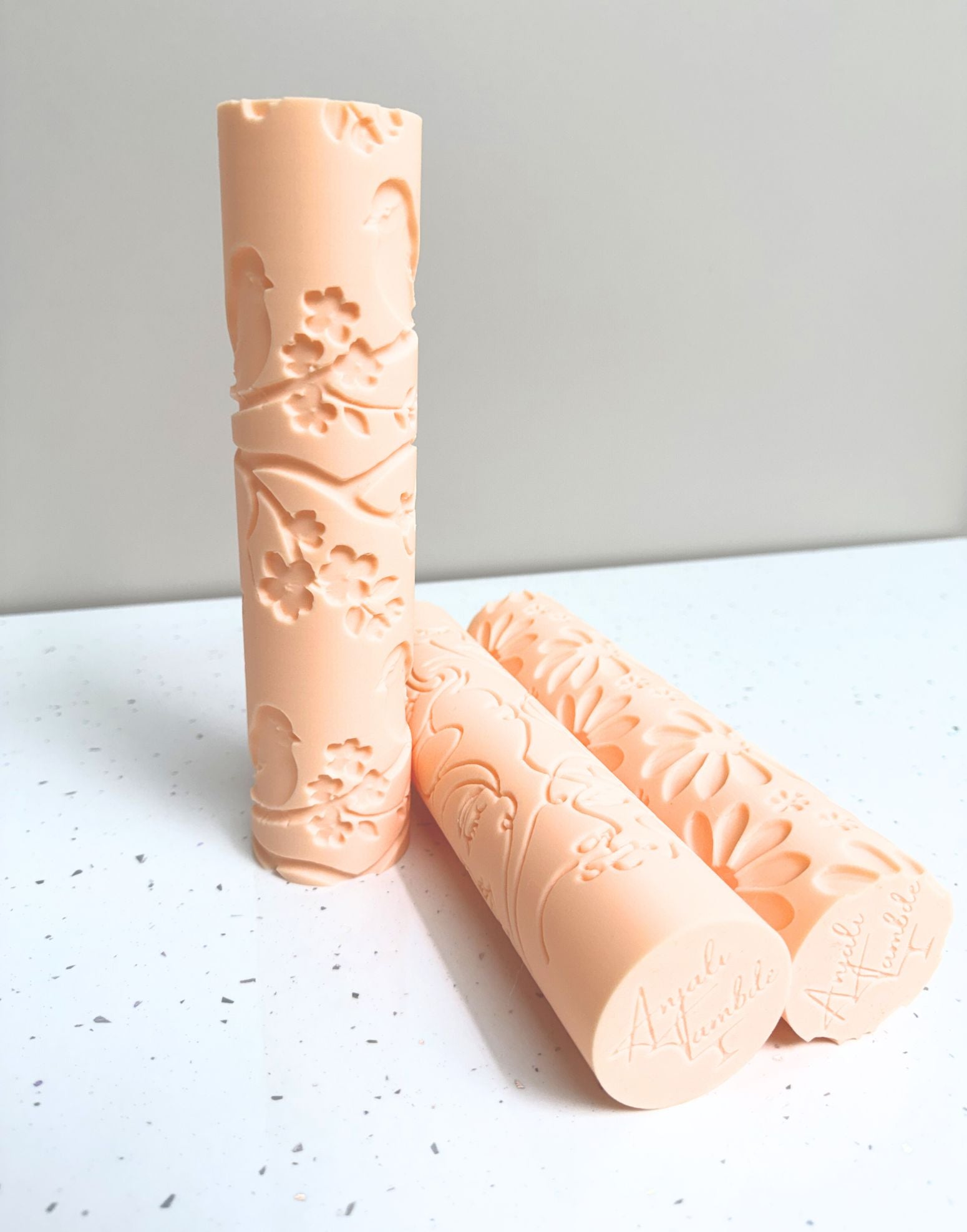 The Spring Serenade Rolling Pin – Anjali Tambde Collaboration features a flowing botanical design with delicate birds perched among blossom branches. Developed in partnership with Anjali Tambde of Global Cake Toppers, this pattern creates defined, sculpted impressions across fondant, modelling chocolate and buttercream panels with clarity and depth.