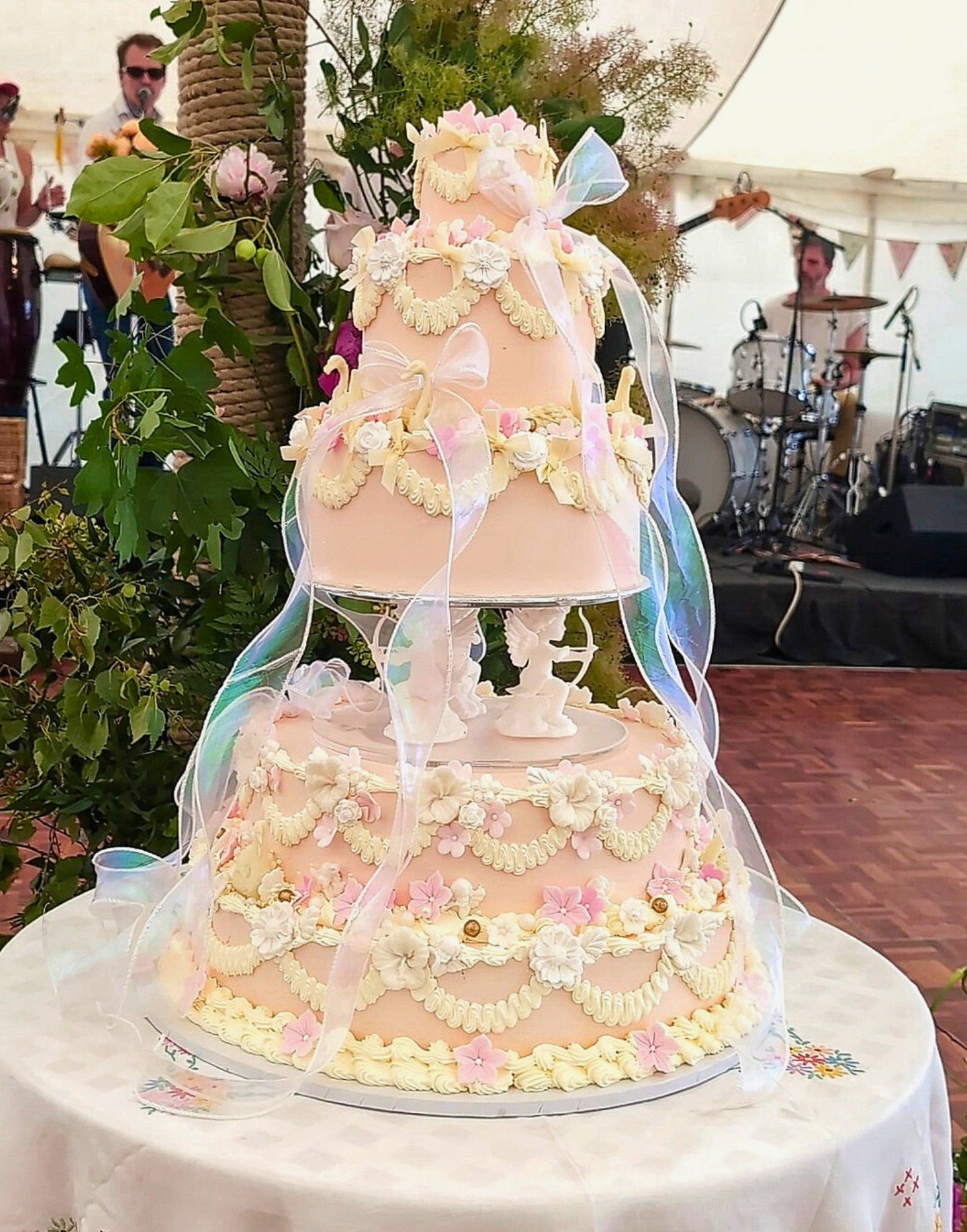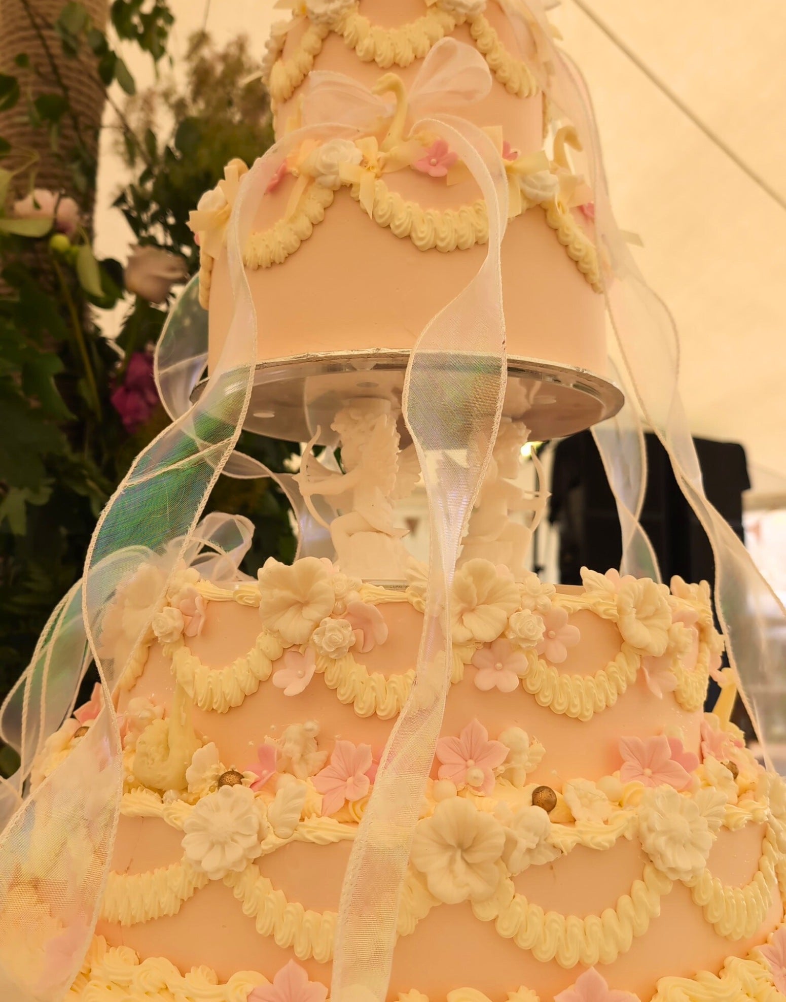 Vintage cherub cake design with a soft, romantic finish