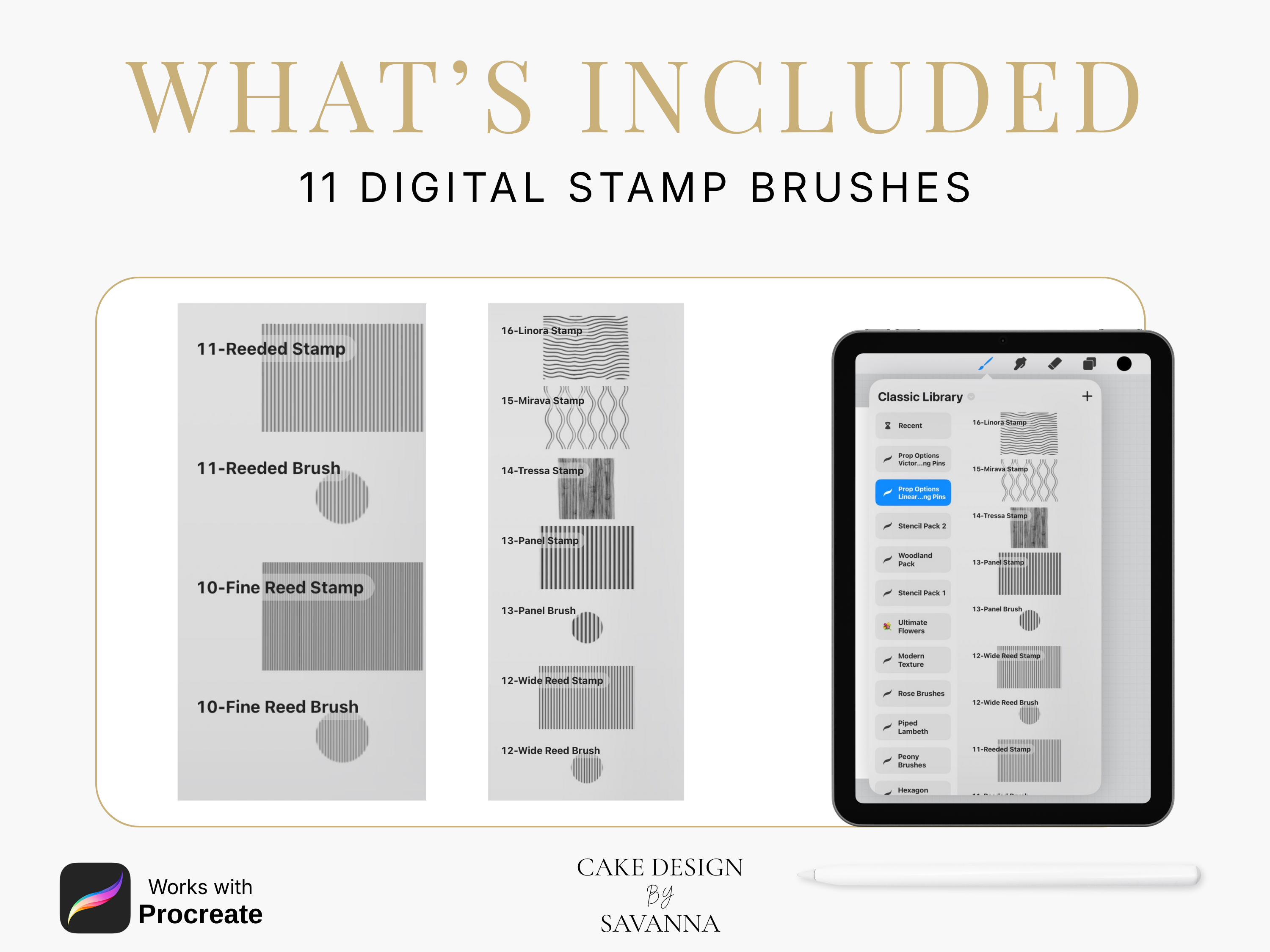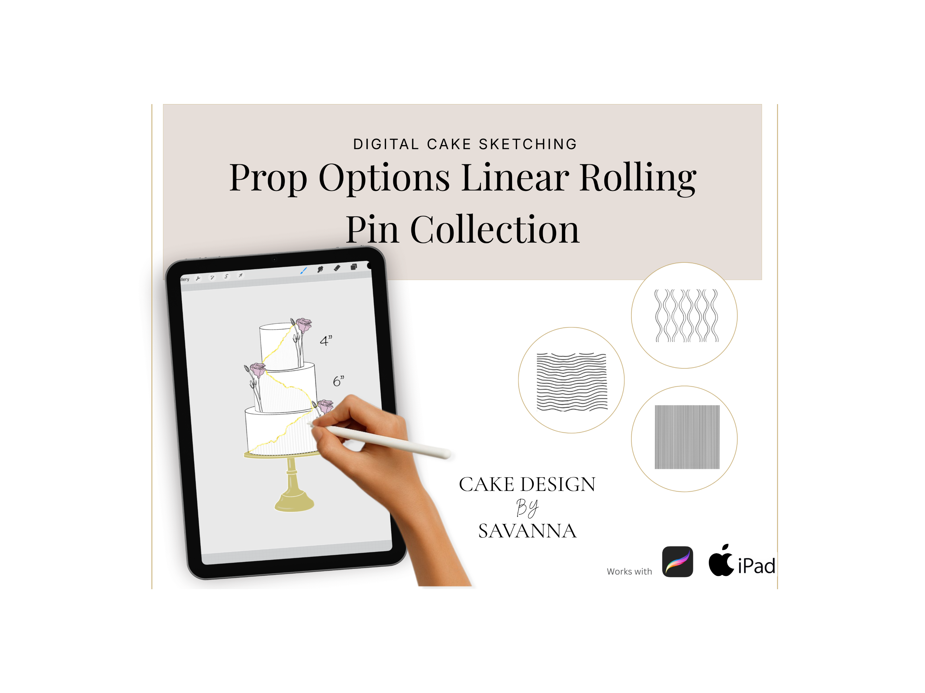 Cake Design Procreate Stamps: Prop Options Linear Rolling Pins