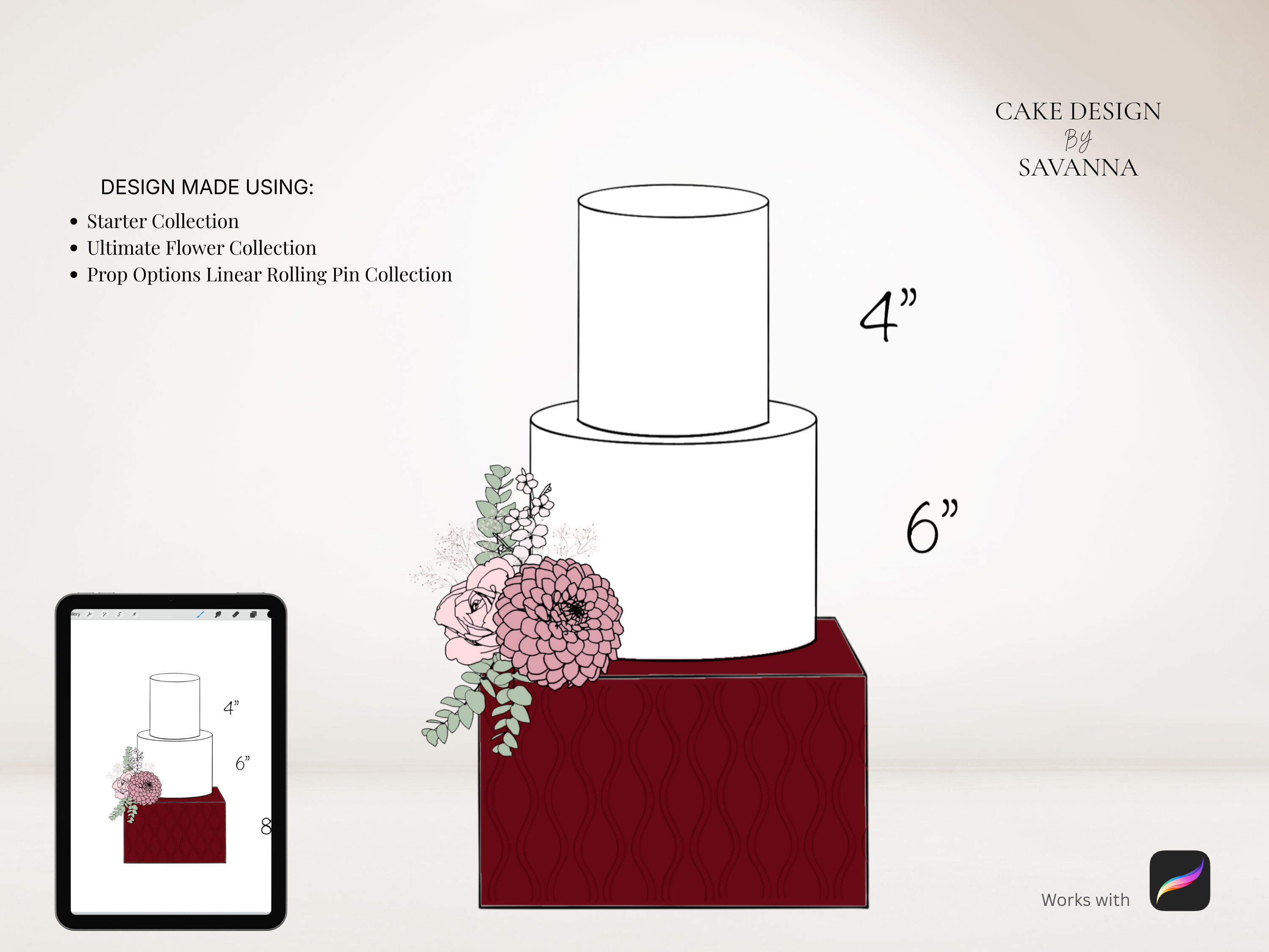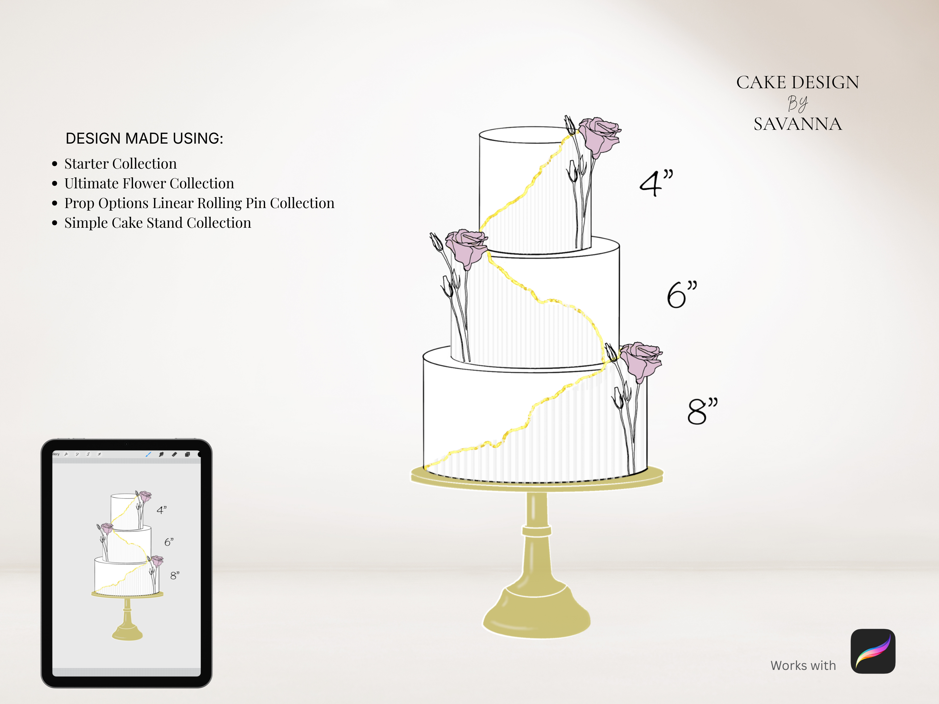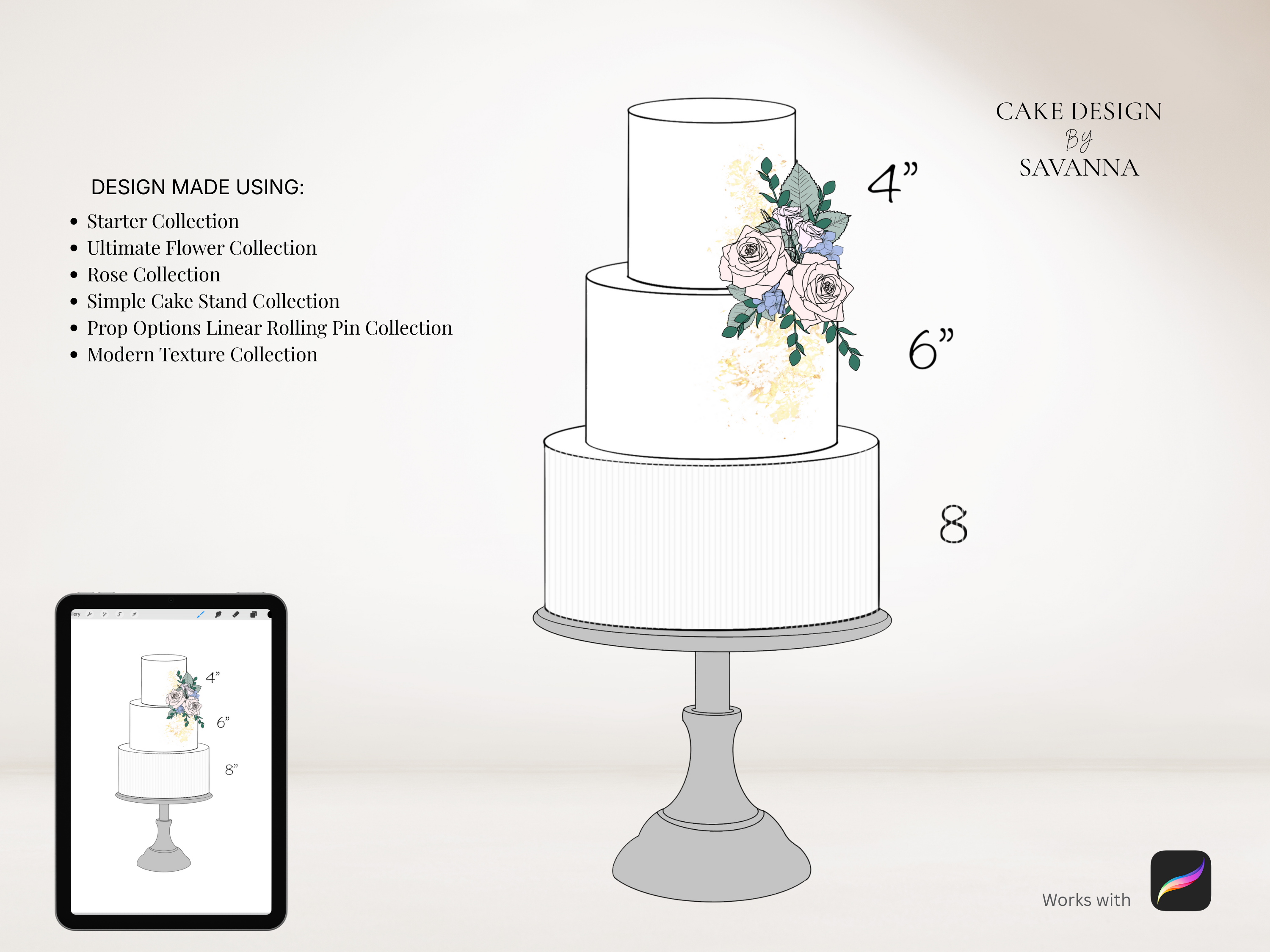 The perfect way to sketch your cake designs. Use these stamps with the Procreate App (available on iPhone and iPad) to design beautiful cakes for your customers.
