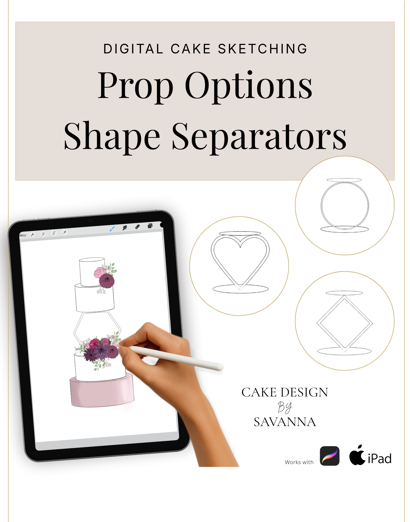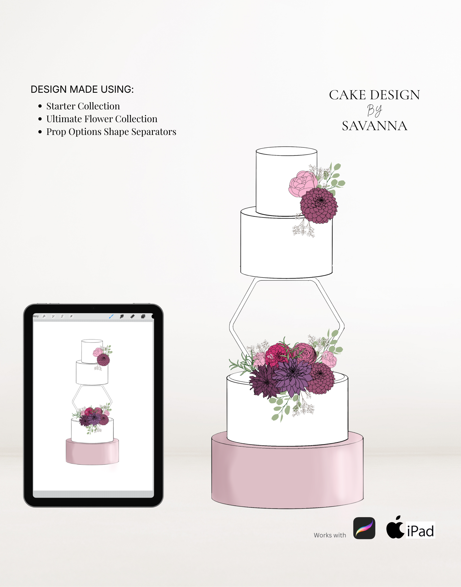 The perfect way to sketch your cake designs. Use these stamps with the Procreate App (available on iPhone and iPad) to design beautiful cakes for your customers.