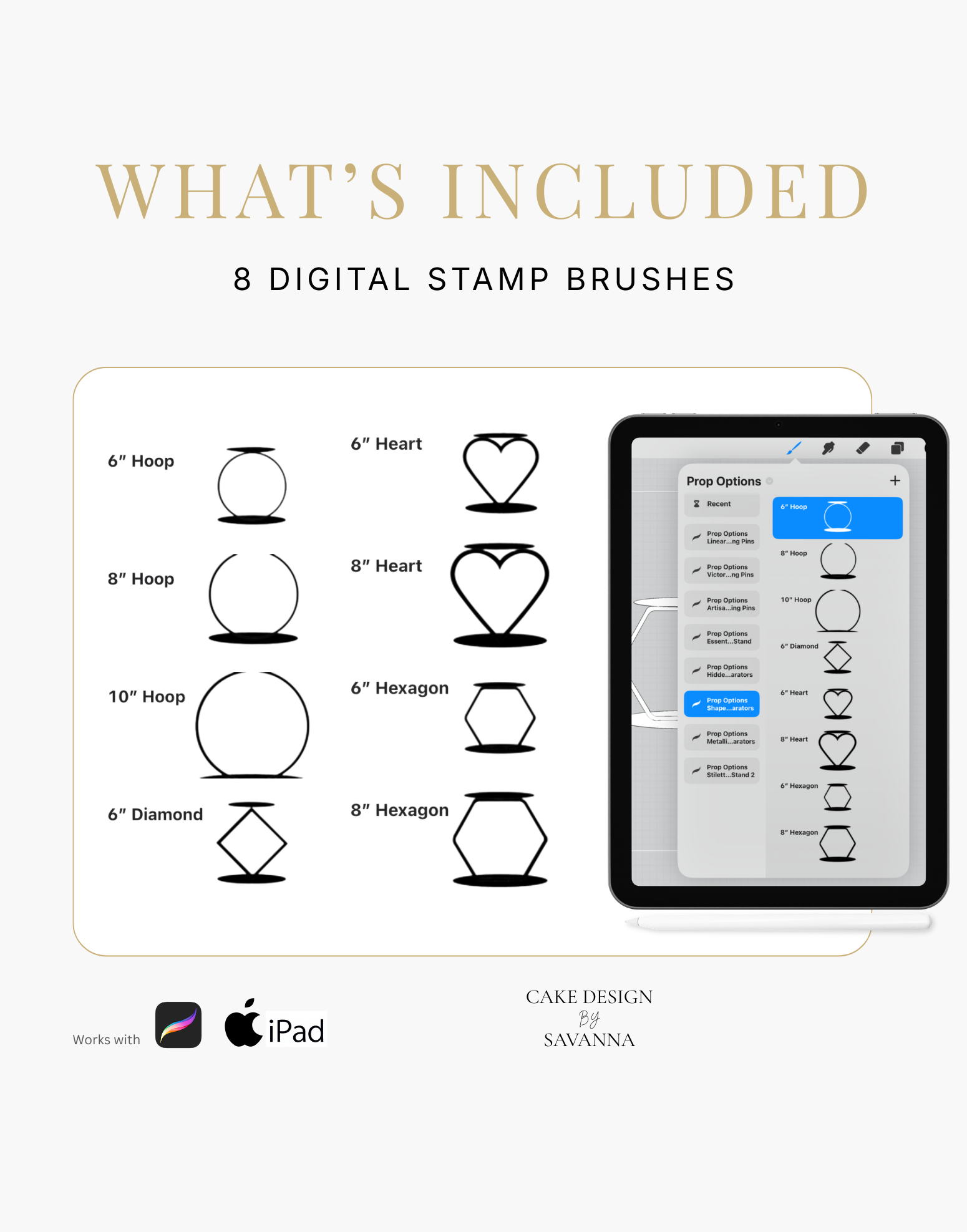 Cake Design Procreate Stamps: Prop Options Shape Cake Separators