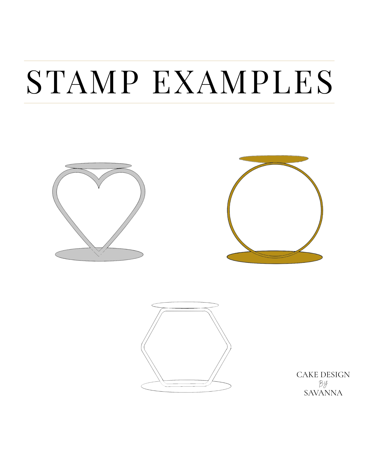 This pack contains the Prop Options Shape Cake Separators, including hoop, heart, diamond, & hexagon.