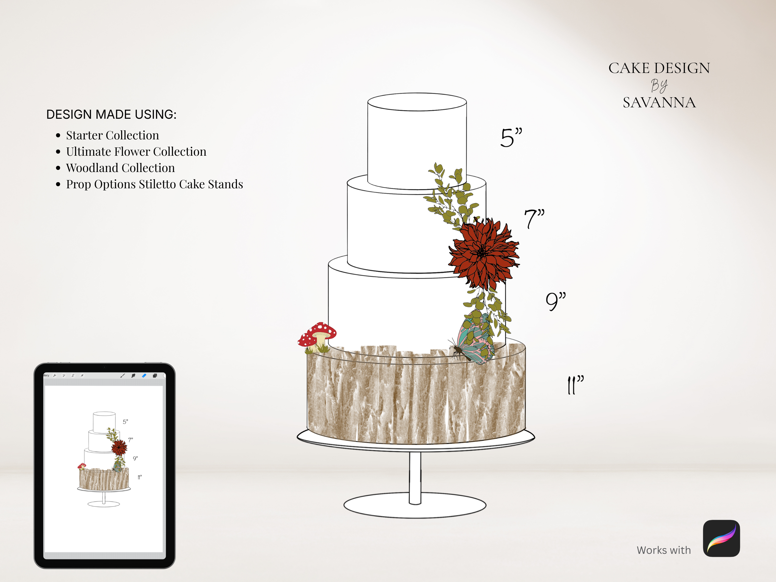 The perfect way to sketch your cake designs. Use these stamps with the Procreate App (available on iPhone and iPad) to design beautiful cakes for your customers.