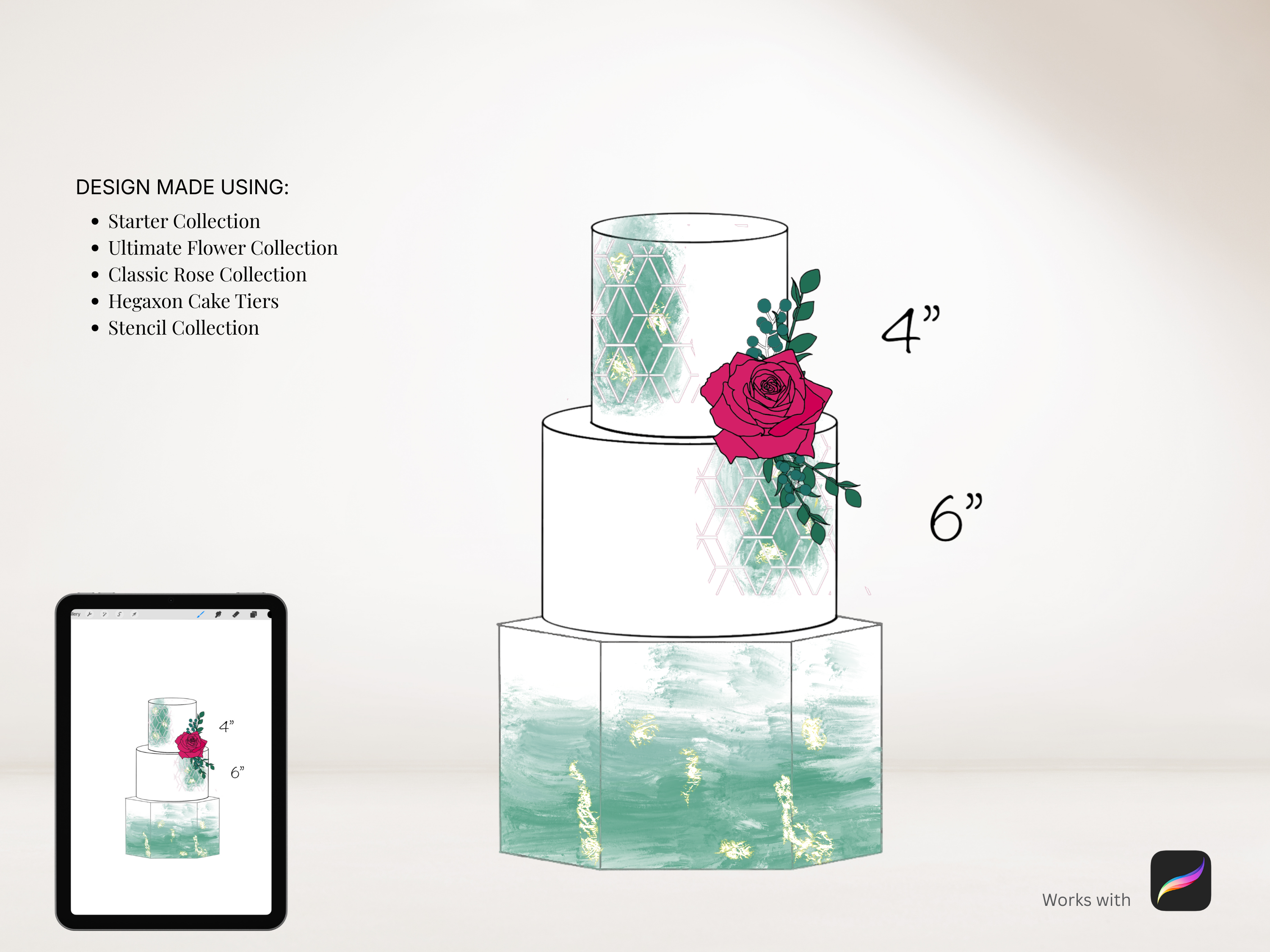 Hexagon Cake Tier Stamps for Procreate
