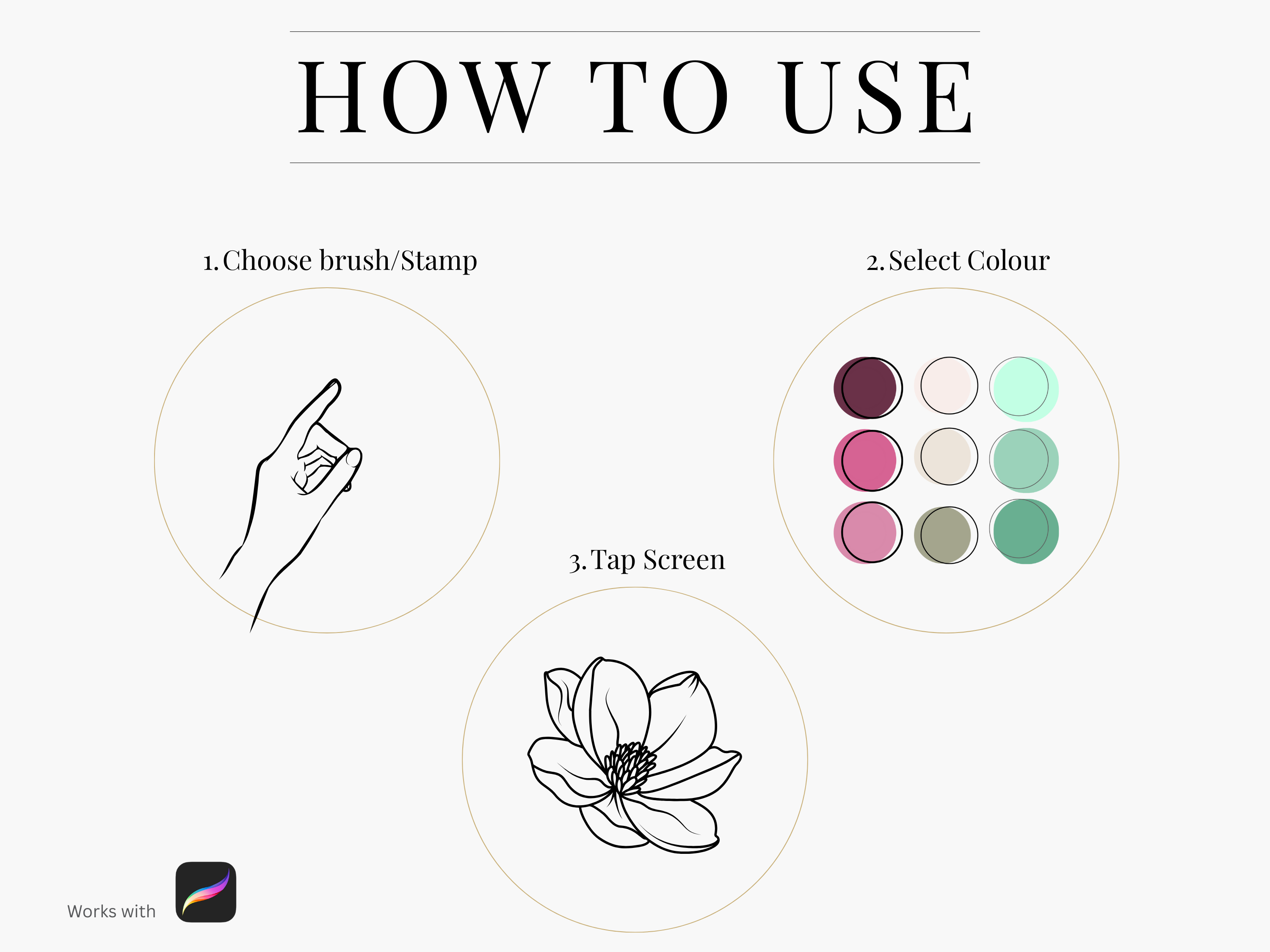Digital products are compatible with the Procreate App, available from the Apple App Store for both iPhone and iPad. Procreate is not included with any of our digital products.