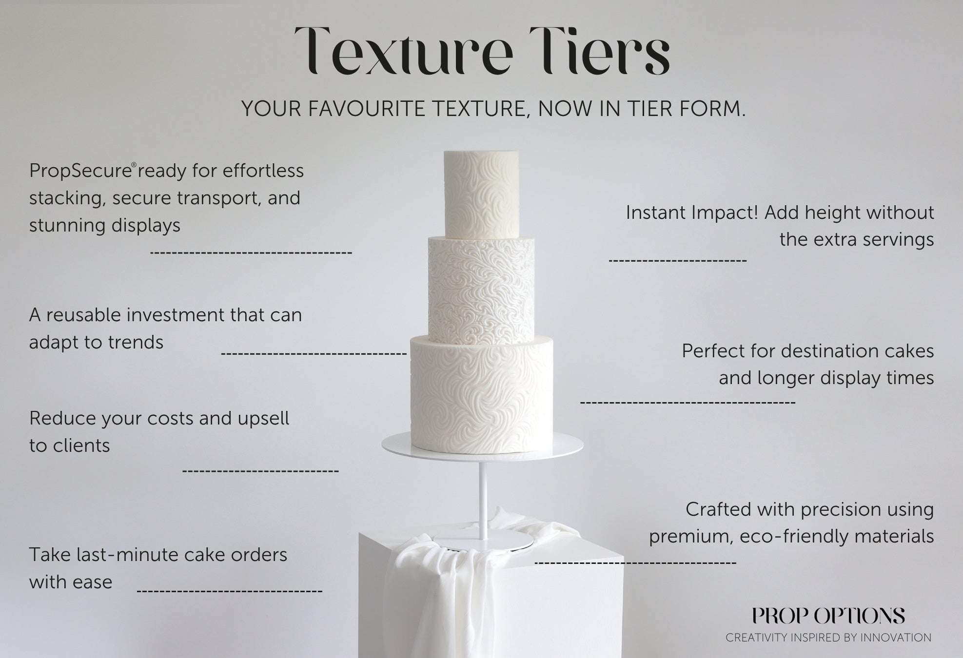 Made for stylists who want to add structure and texture without adding weight. The Olive design is inspired by our bestselling Rolling Pin design and creates a clean break between tiers, introducing visual depth to your setup. Simple to stack and strong enough for real or dummy cakes.