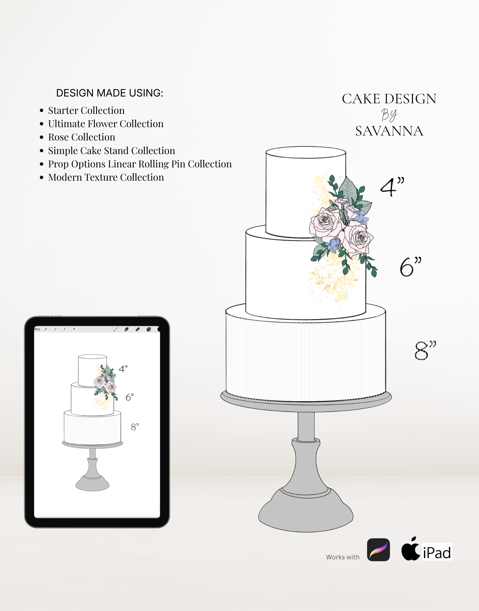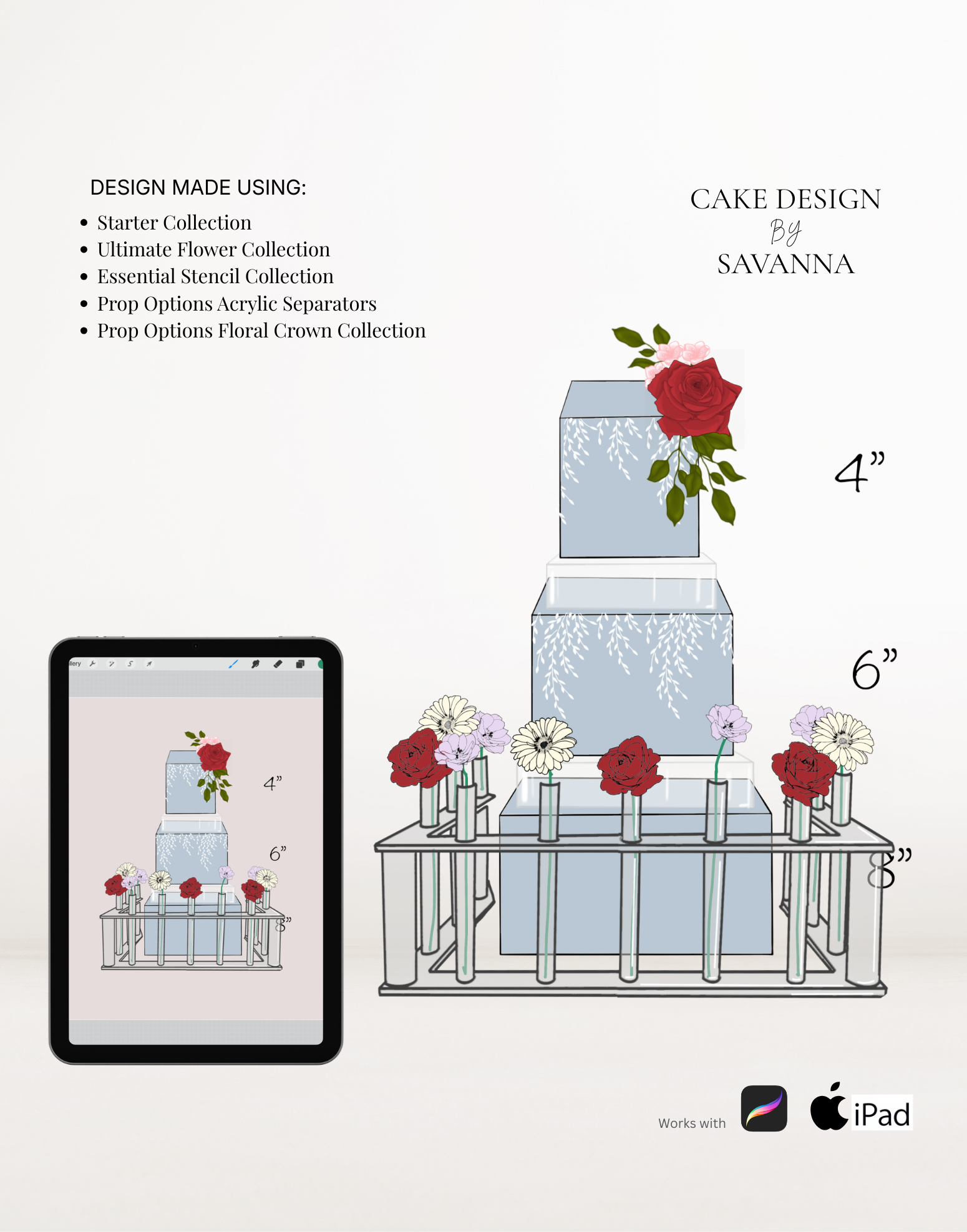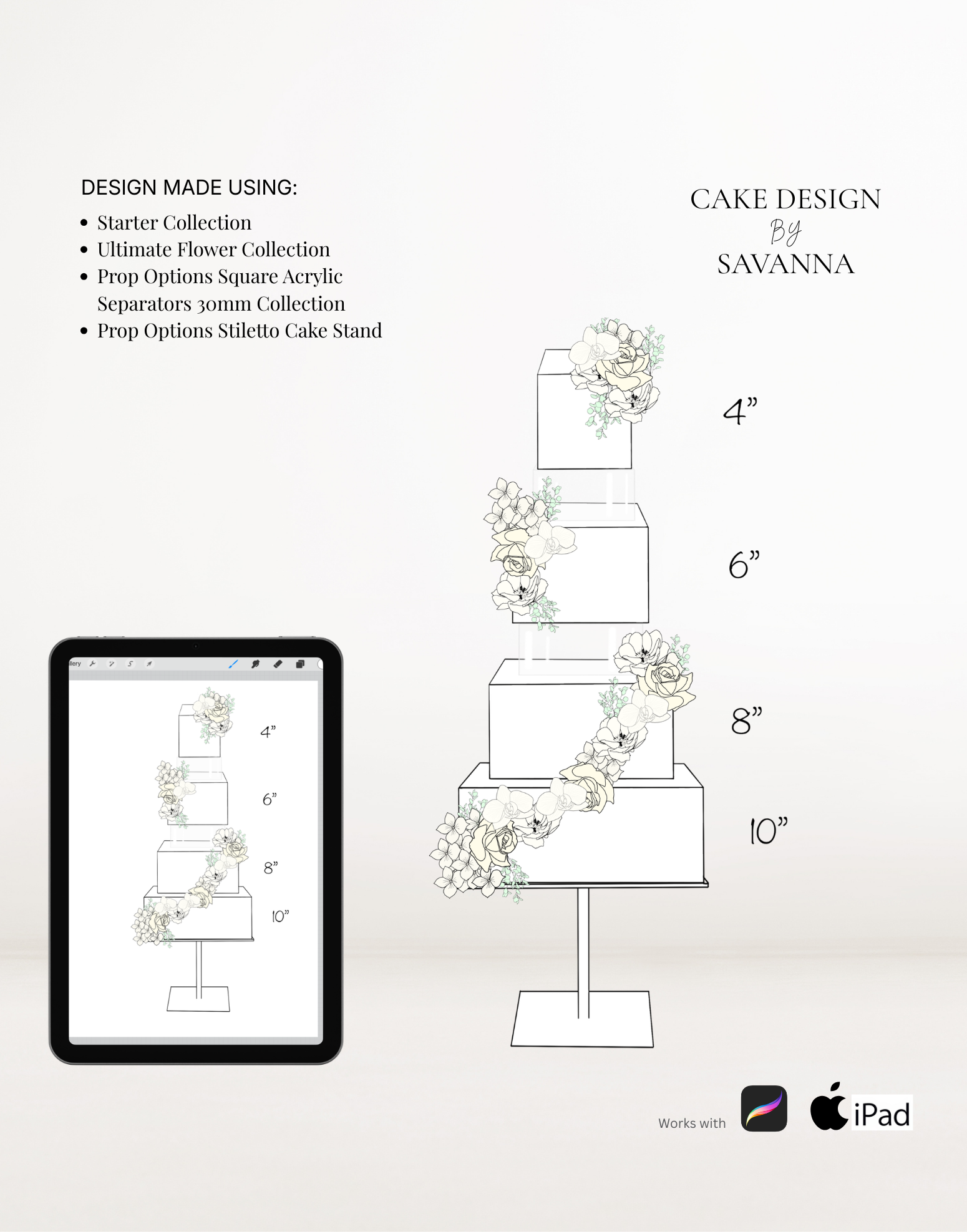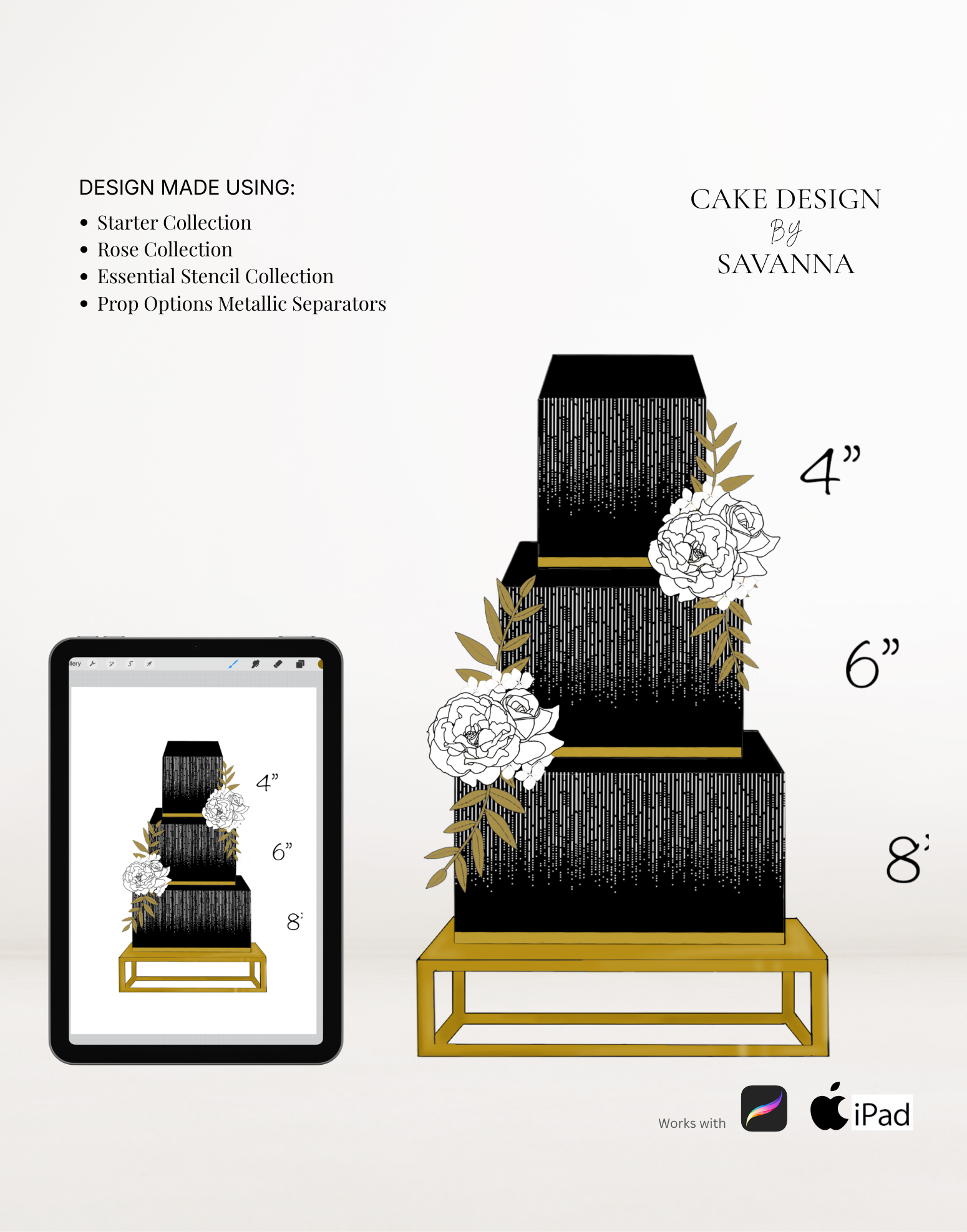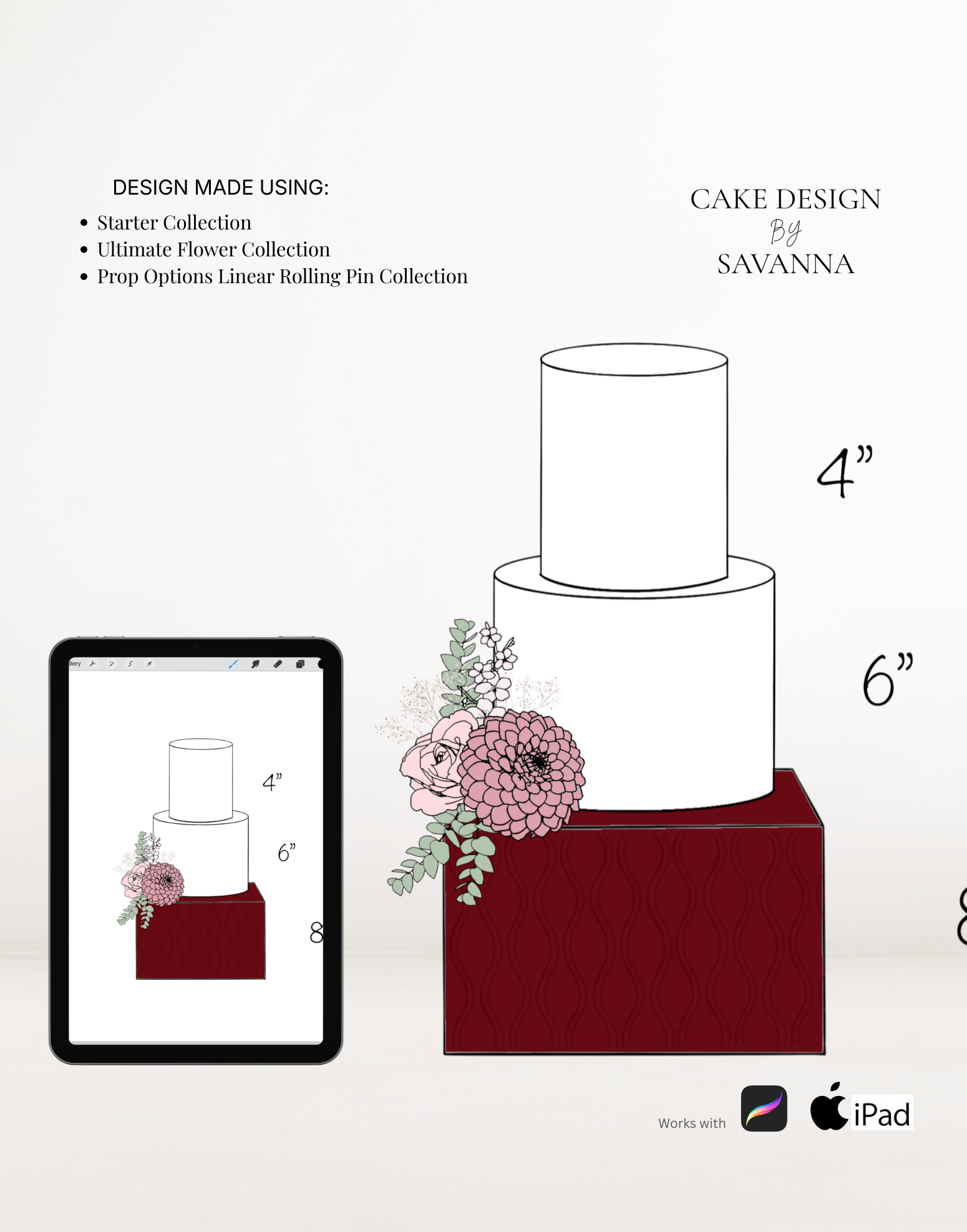 From digital Procreate stamp sets and ready-designed packages to future physical design tools, Cake Design by Savanna exists to remove repetitive work, streamline workflows, and enhance how cake designs are presented to clients.