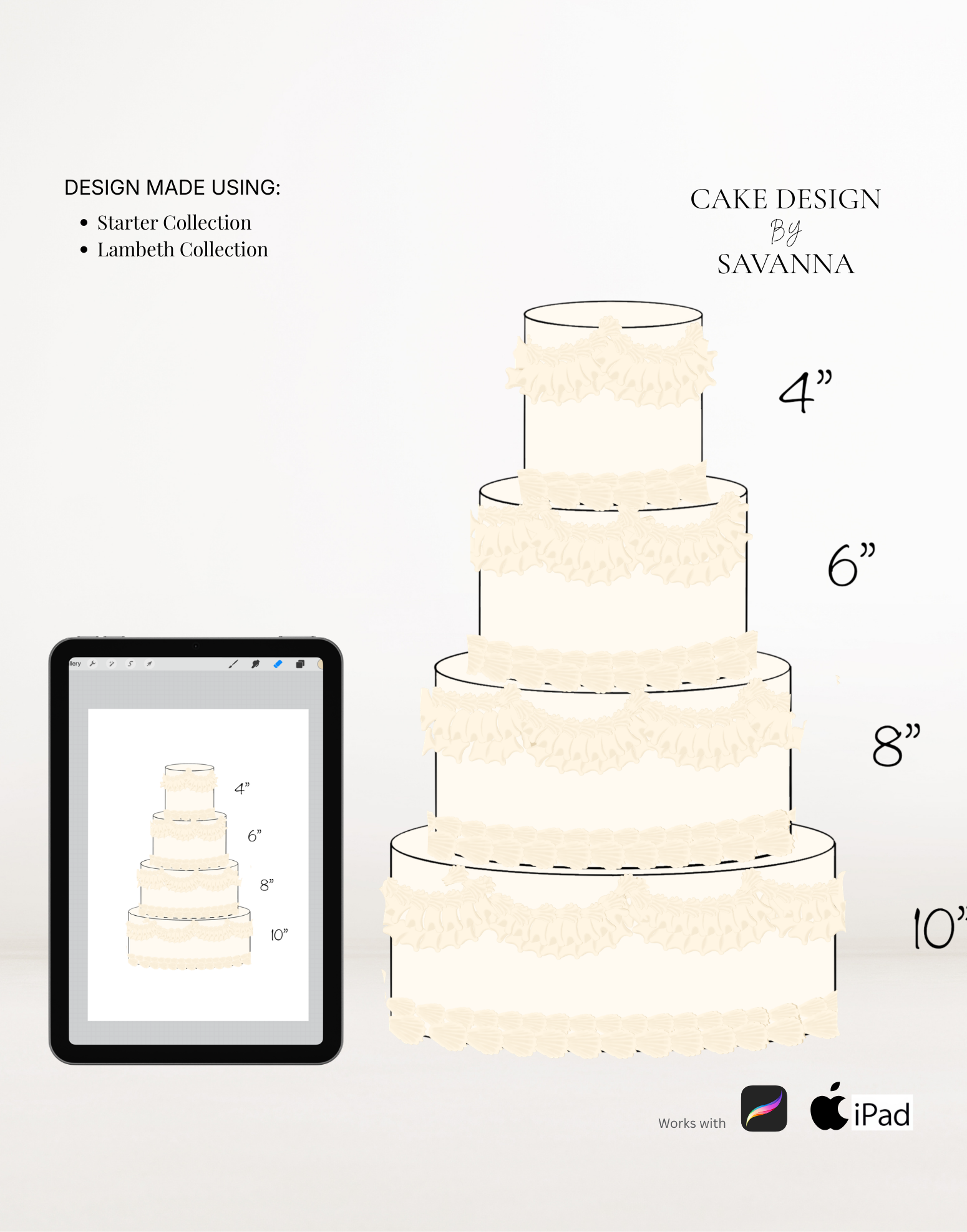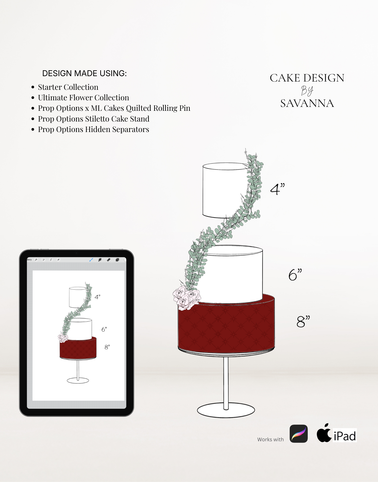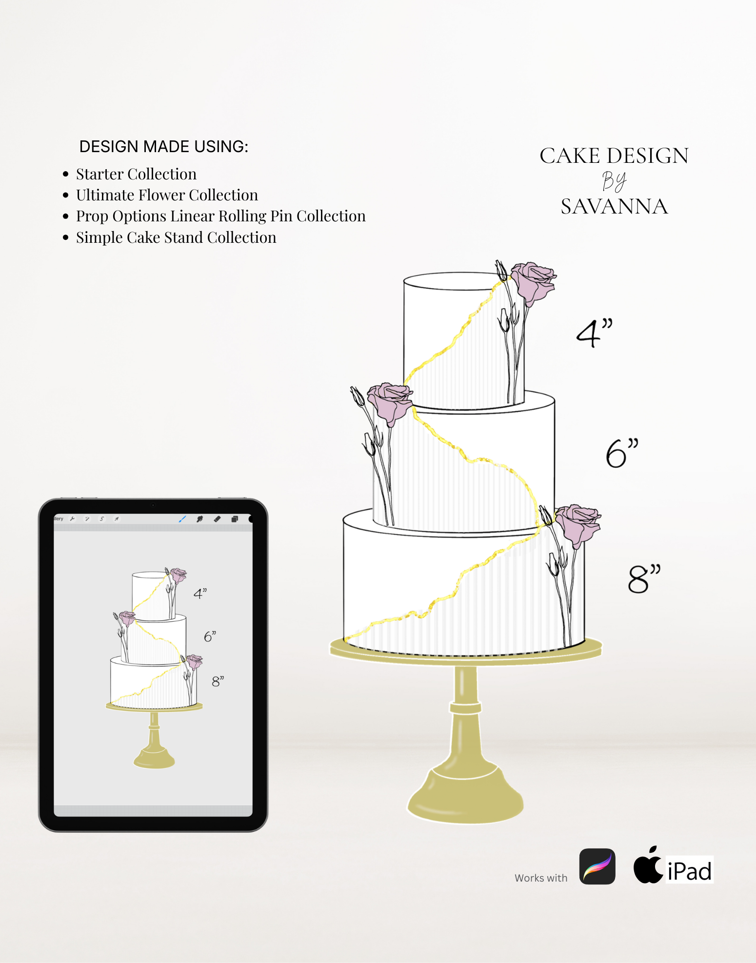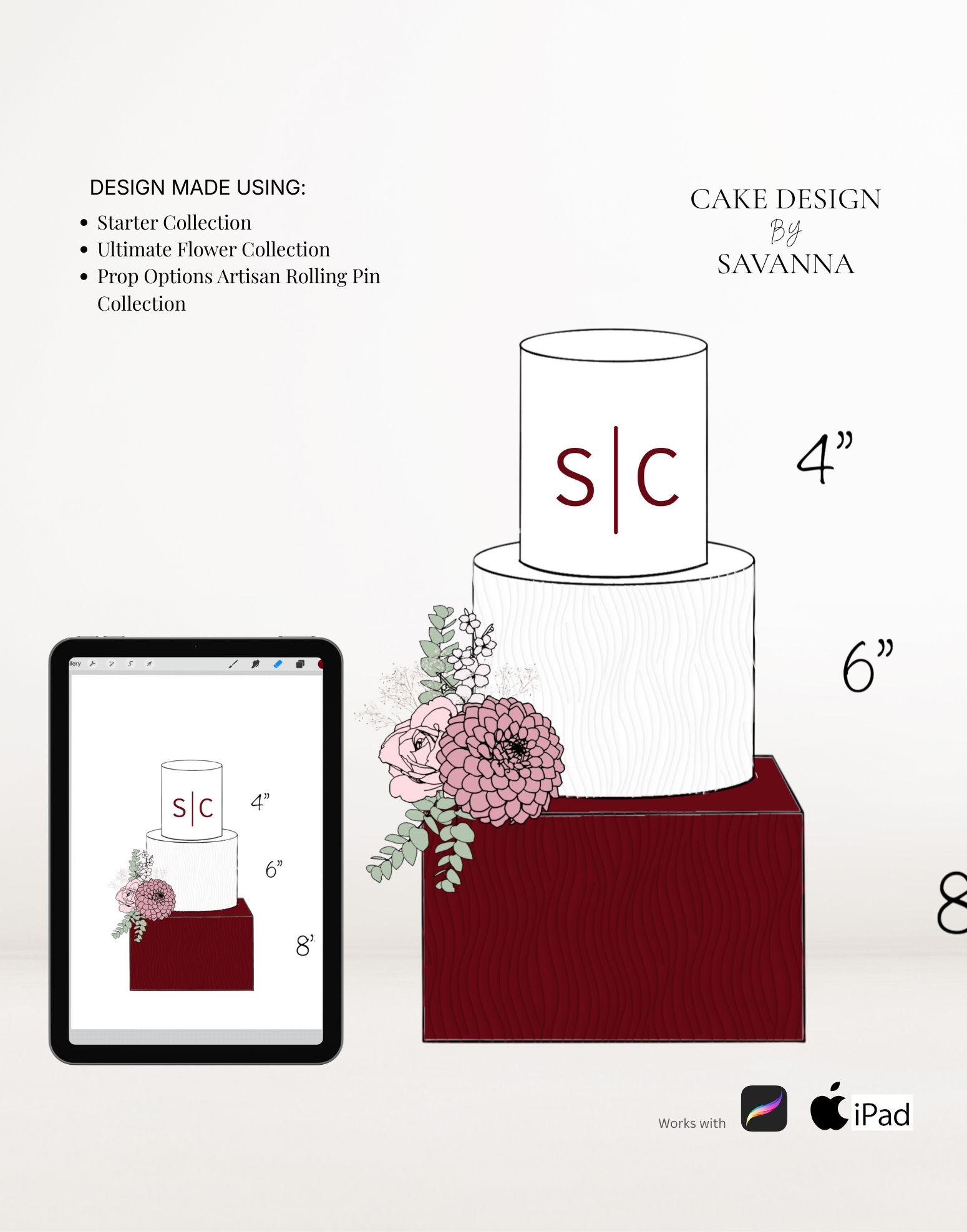 From digital Procreate stamp sets and ready-designed packages to future physical design tools, Cake Design by Savanna exists to remove repetitive work, streamline workflows, and enhance how cake designs are presented to clients.