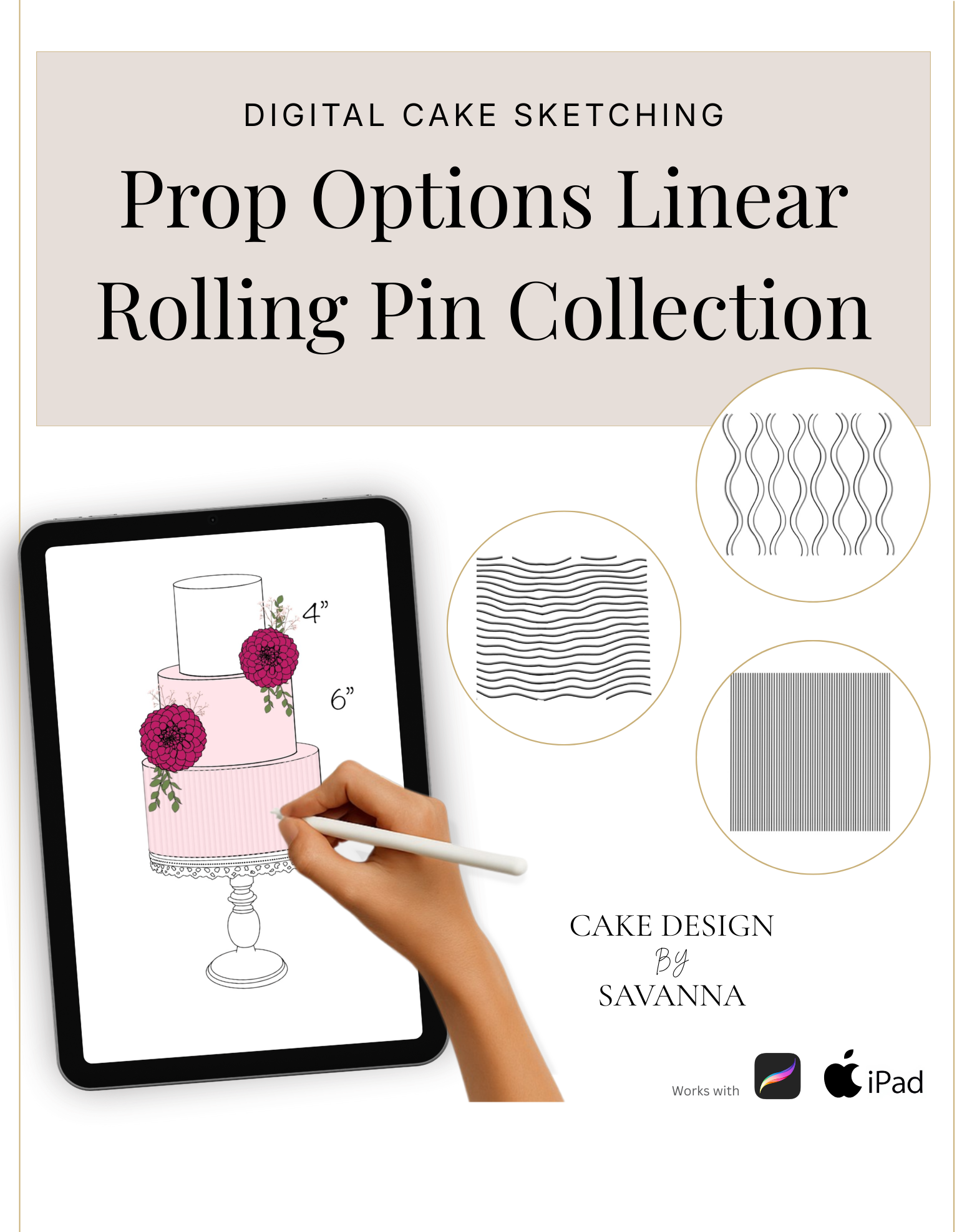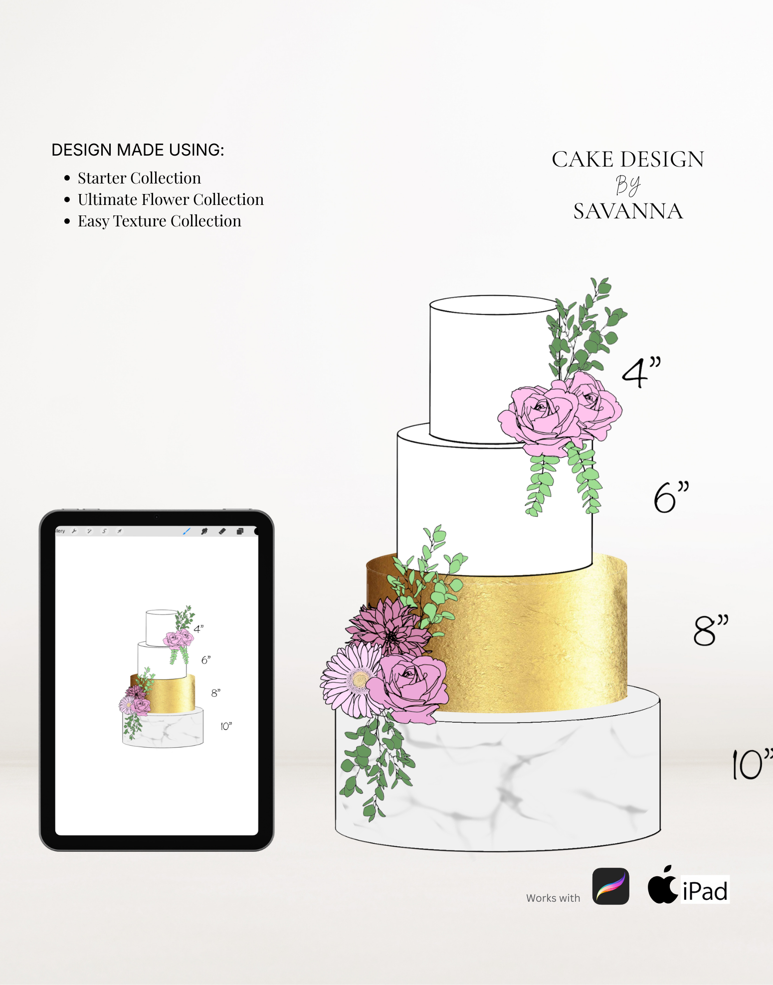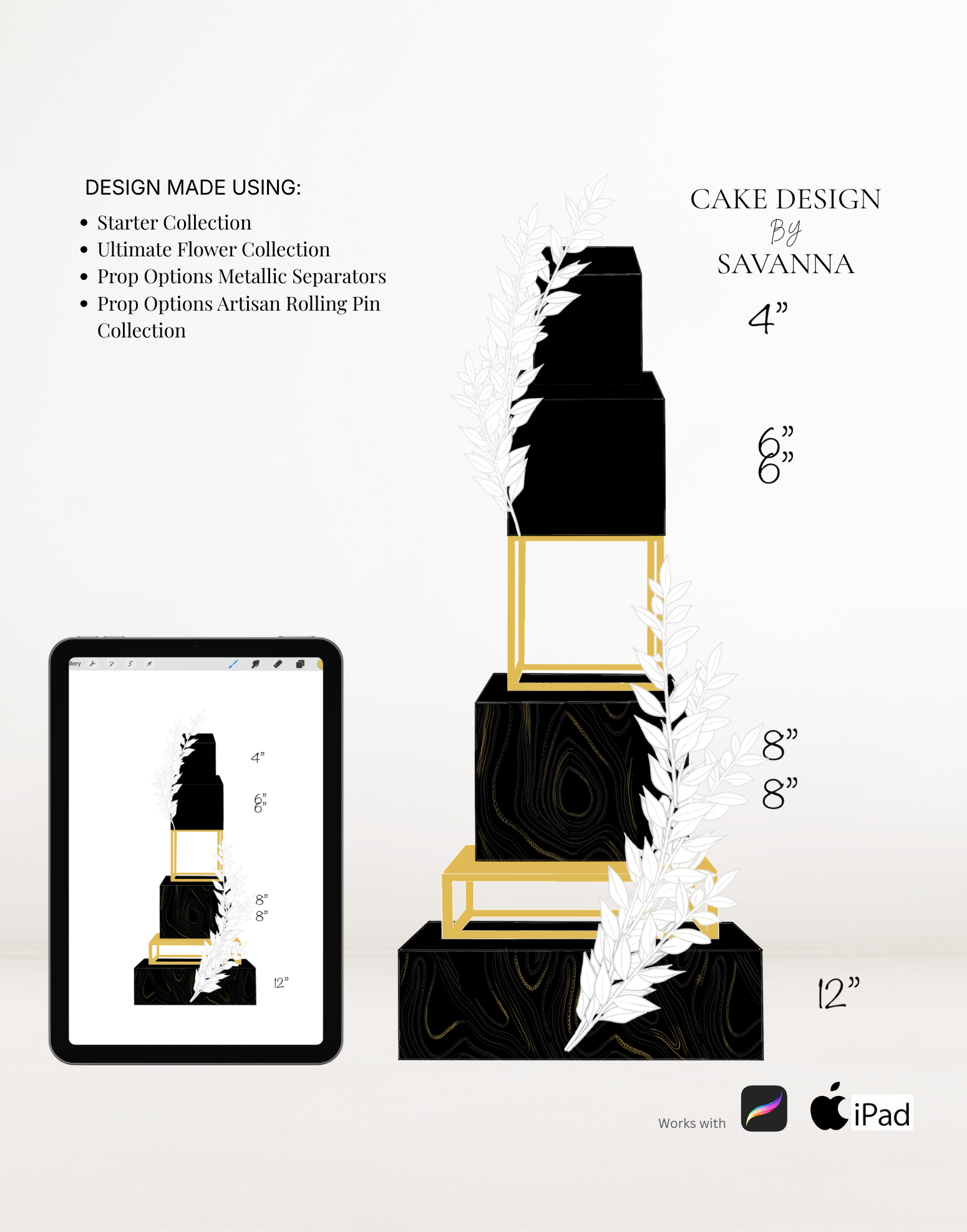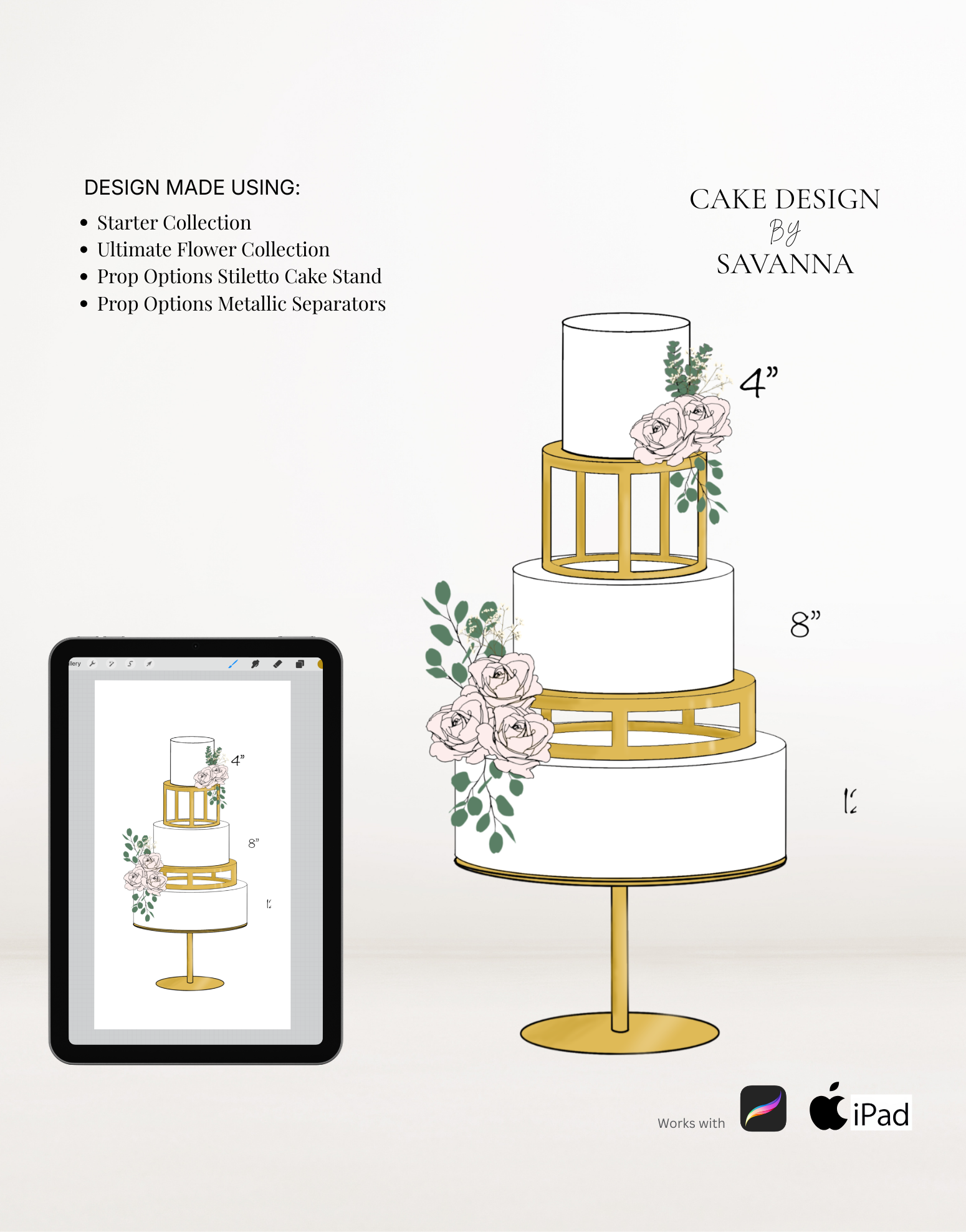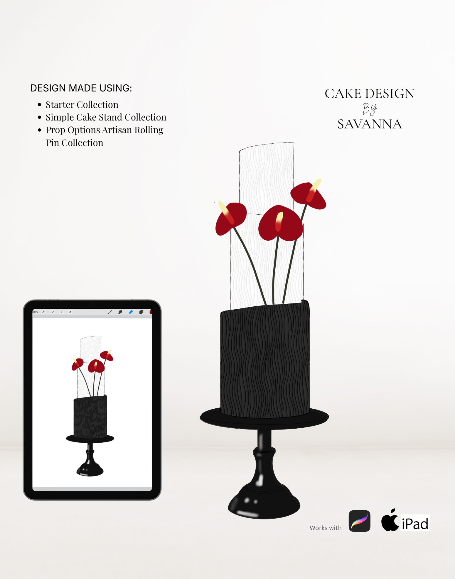 From digital Procreate stamp sets and ready-designed packages to future physical design tools, Cake Design by Savanna exists to remove repetitive work, streamline workflows, and enhance how cake designs are presented to clients.