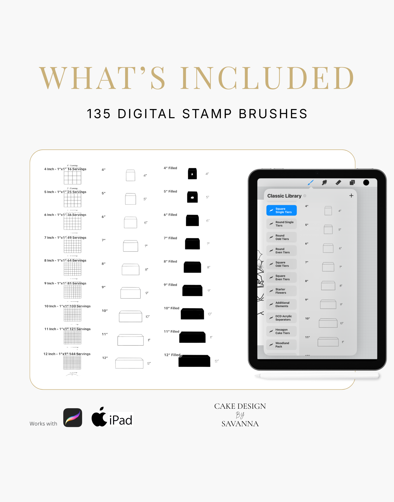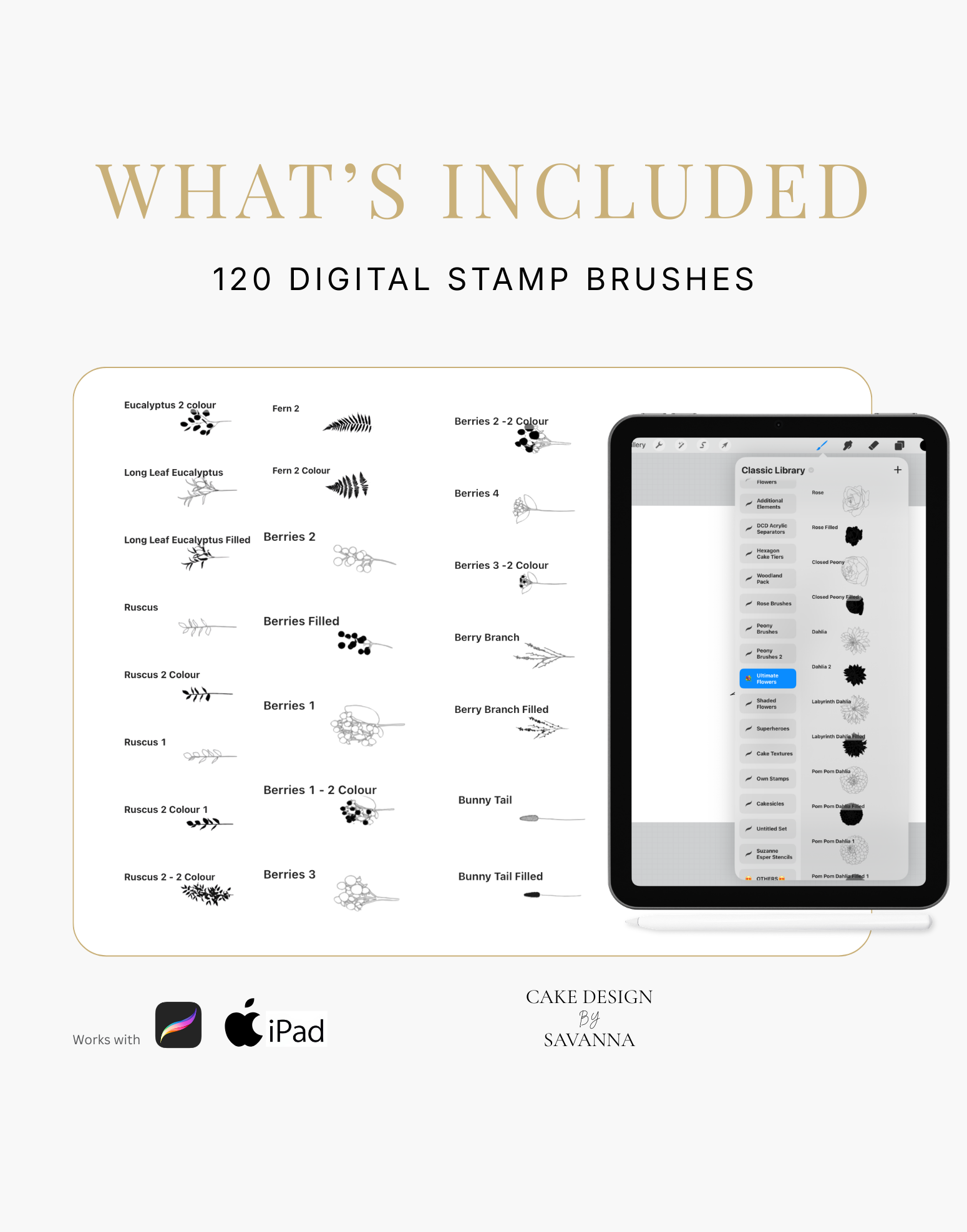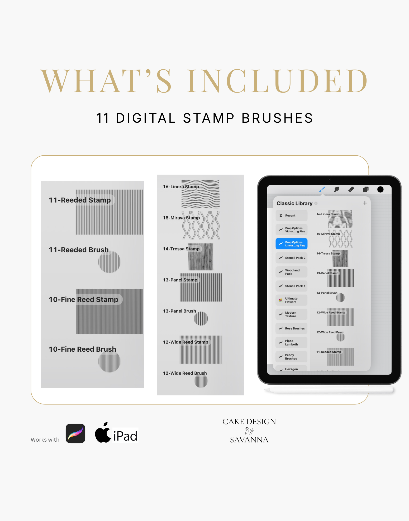 Turn your creative cake ideas into polished design visuals. Specialist stamps and brushes pair with the Procreate app on iPhone and iPad to sketch, refine, and present stunning cake designs with ease.