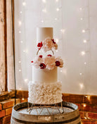 Si bien no es esencial ya que nuestros productos son 100% seguros para alimentos, para garantizar que sus soportes y separadores se mantengan en óptimas condiciones, recomendamos usar una tabla para pasteles debajo de sus niveles, ya que no podemos garantizar cómo los diferentes medios para pasteles disponibles interactuarán con el acabado.