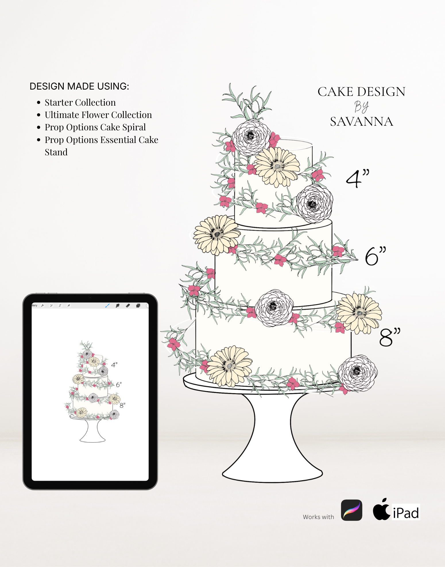 If you are learning digital cake sketching, these stamps will save you time while elevating the overall look of your designs.