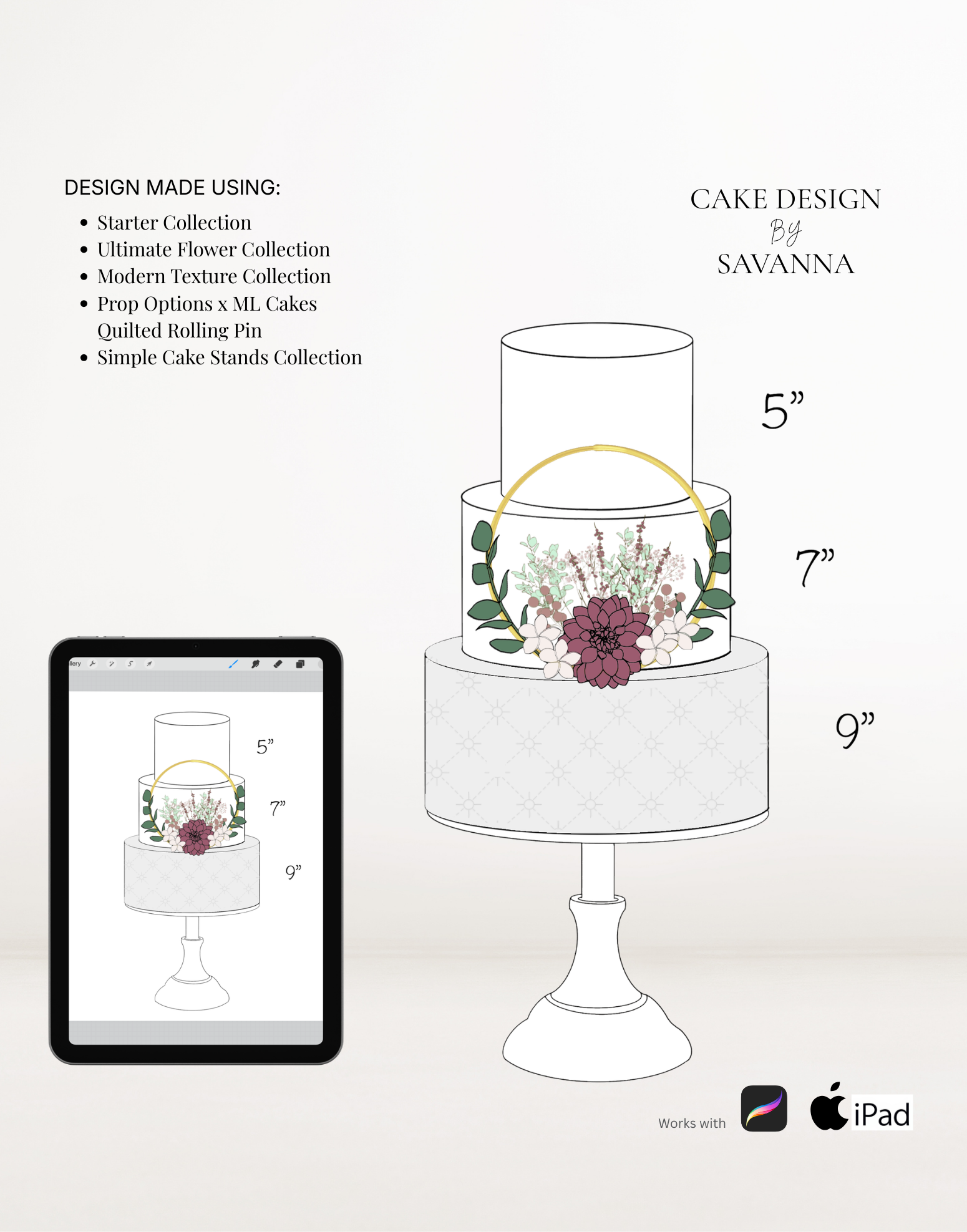 The perfect way to sketch your cake designs. Use these stamps with the Procreate App (available on iPhone and iPad) to design beautiful cakes for your customers.