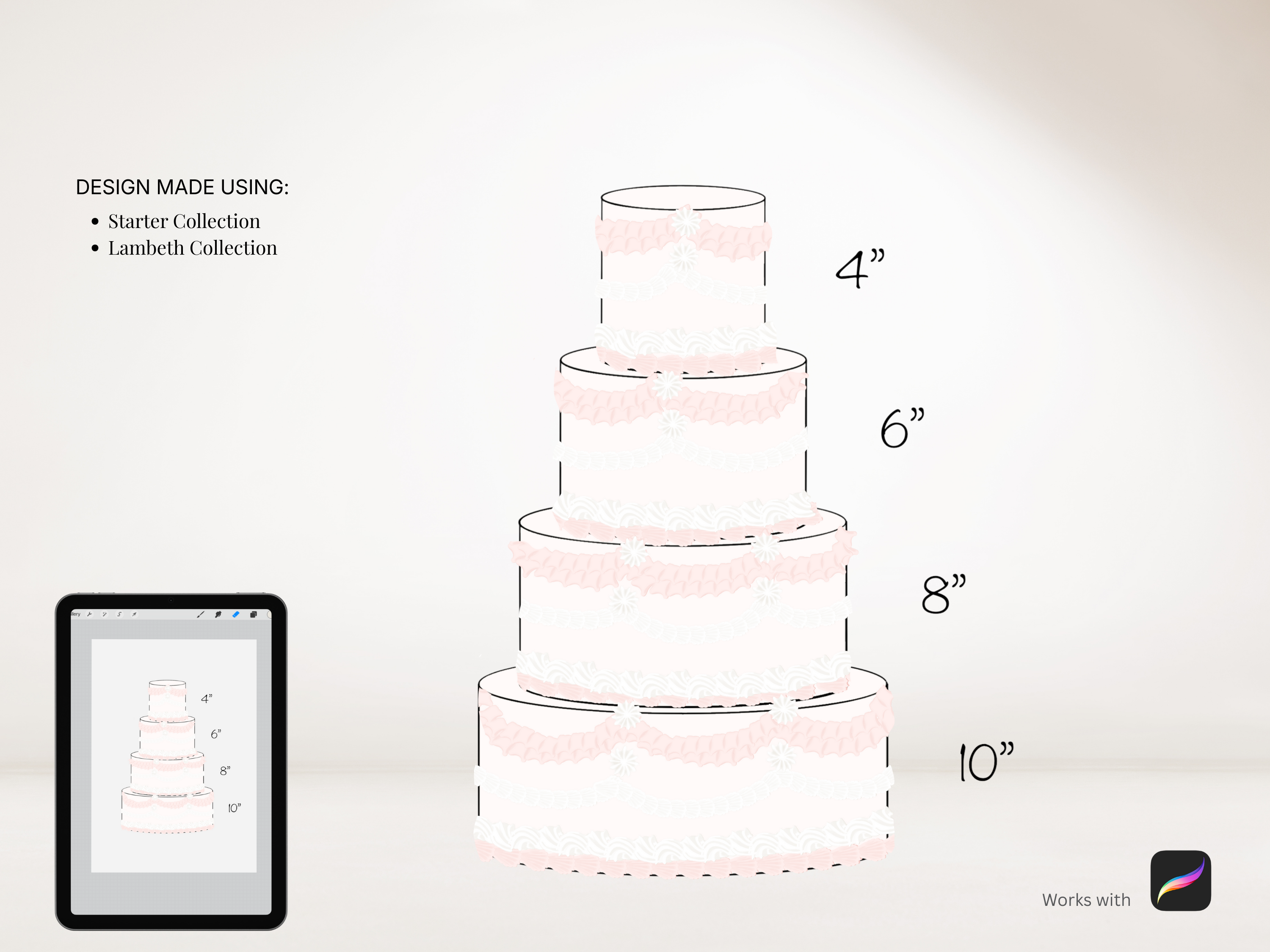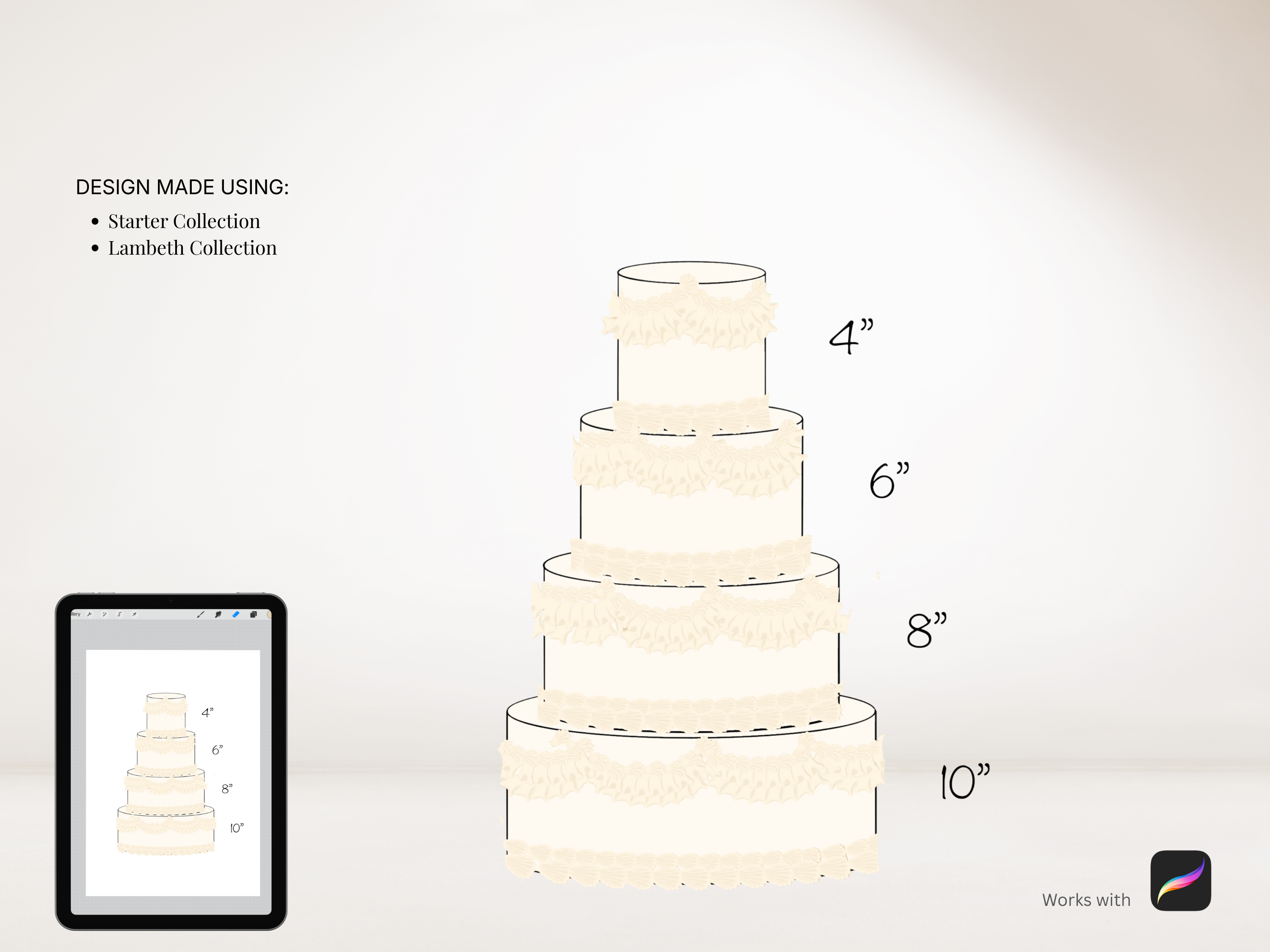 This Lambeth style buttercream piping procreate brush set is easy to use, and creates modern designs. With a mix of stamps and brushes, you can eailty create the Lambeth style of cake design. the stamps and brushes are dual colour, meaning there are shadows and highlights built into the stamps. simply choose 2 colours (a darker and a lighter) and start stamping.