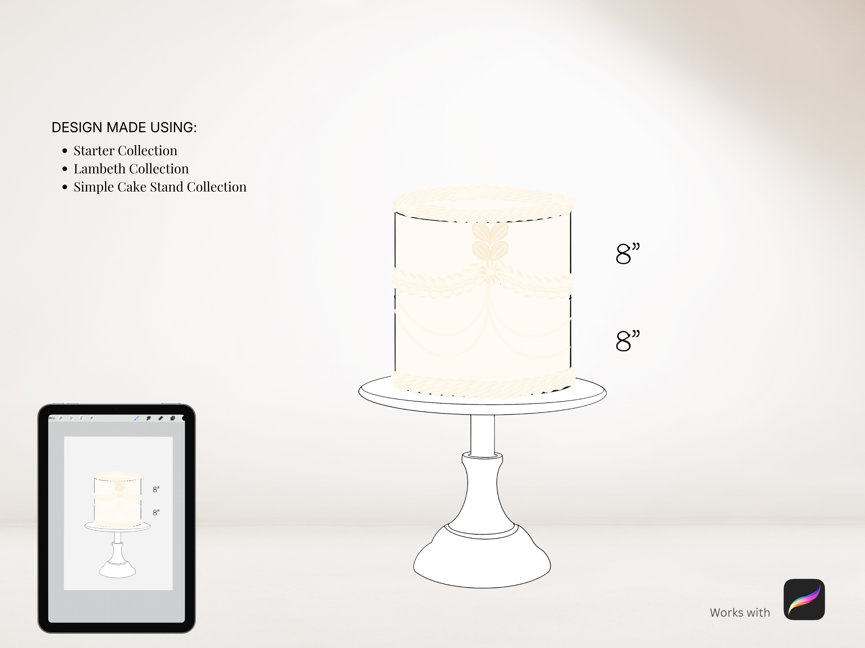 Simple to use, just stamp or draw onto the cake design and resize and duplicate as needed.