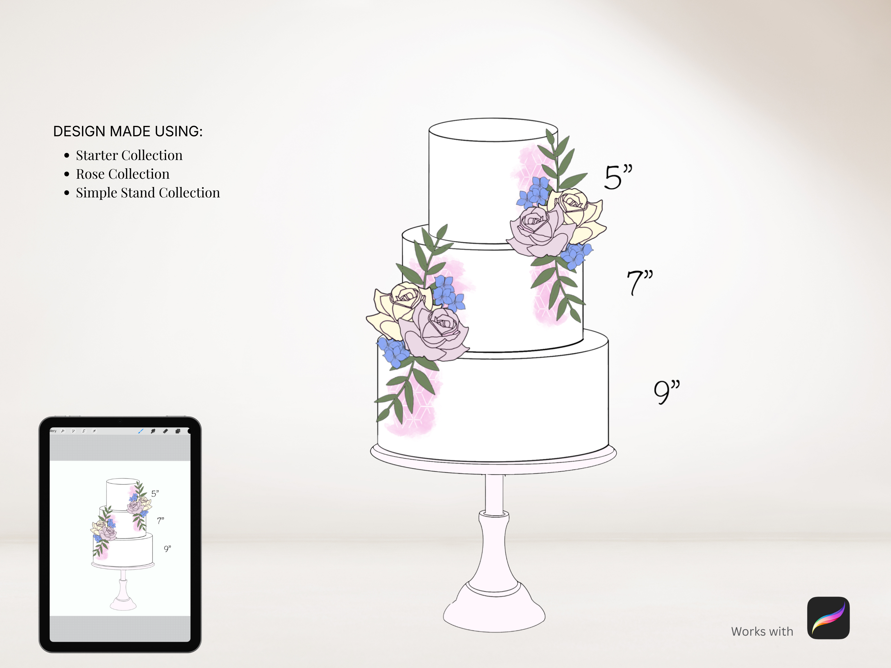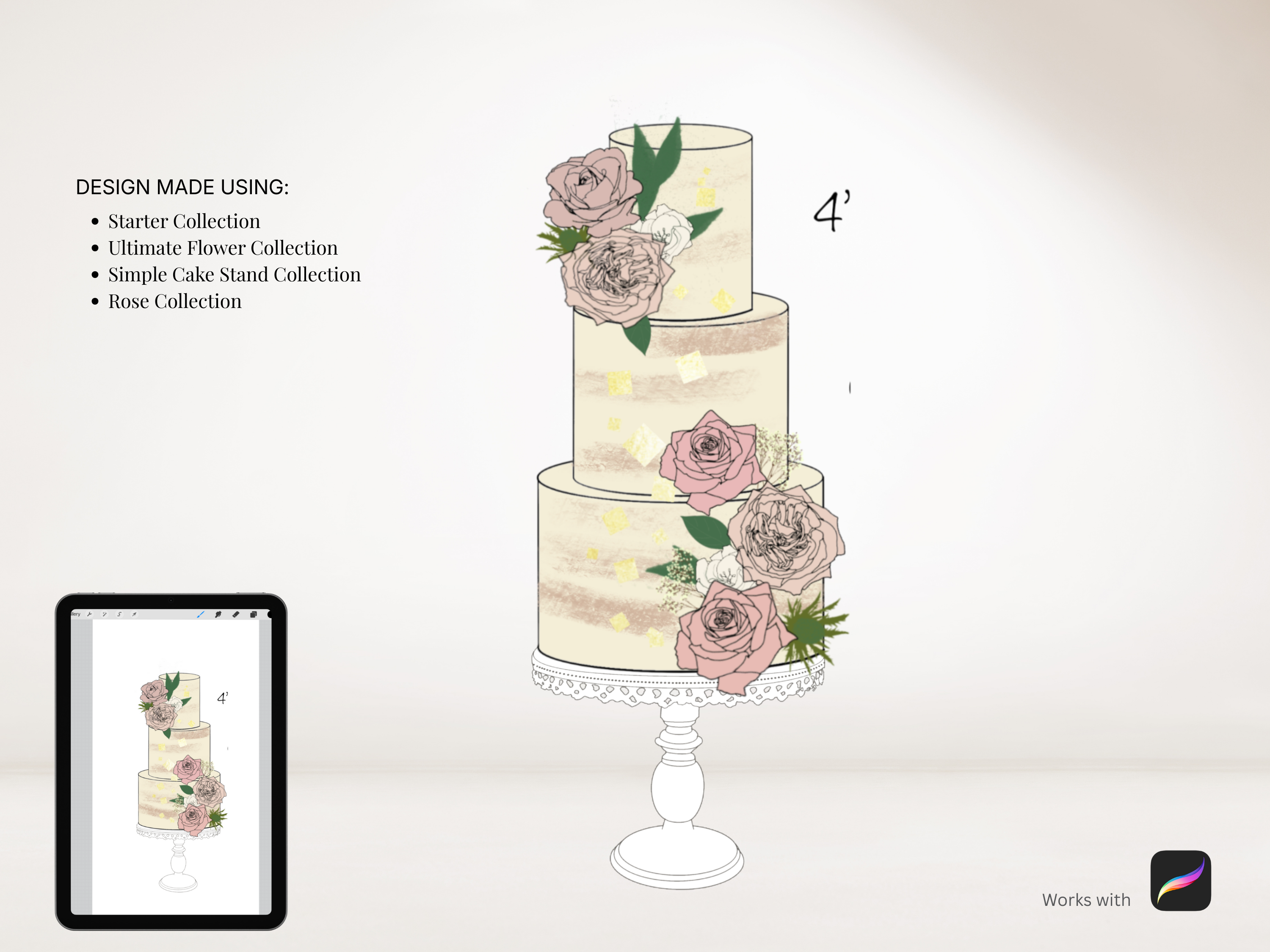 Create beautiful designs with this Rose stamp pack. Perfect for flower cascades on cake designs, or any digital drawing.