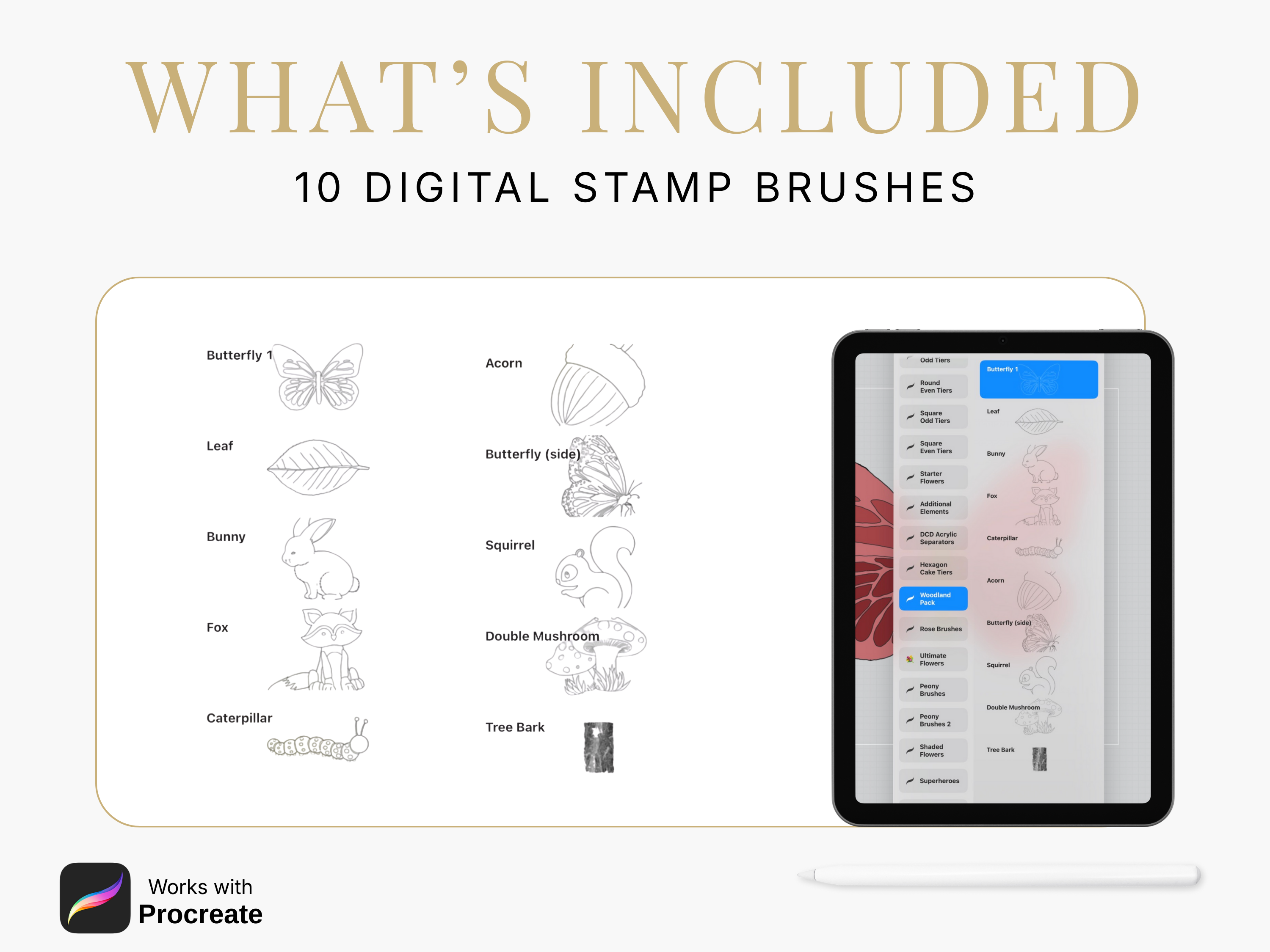 Woodland themed stencils for use with Procreate.