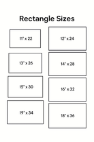 Rectangle: Dimensions listed as width x depth — see image for exact visual size references