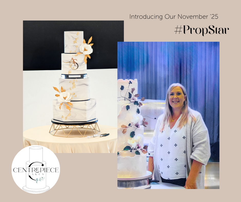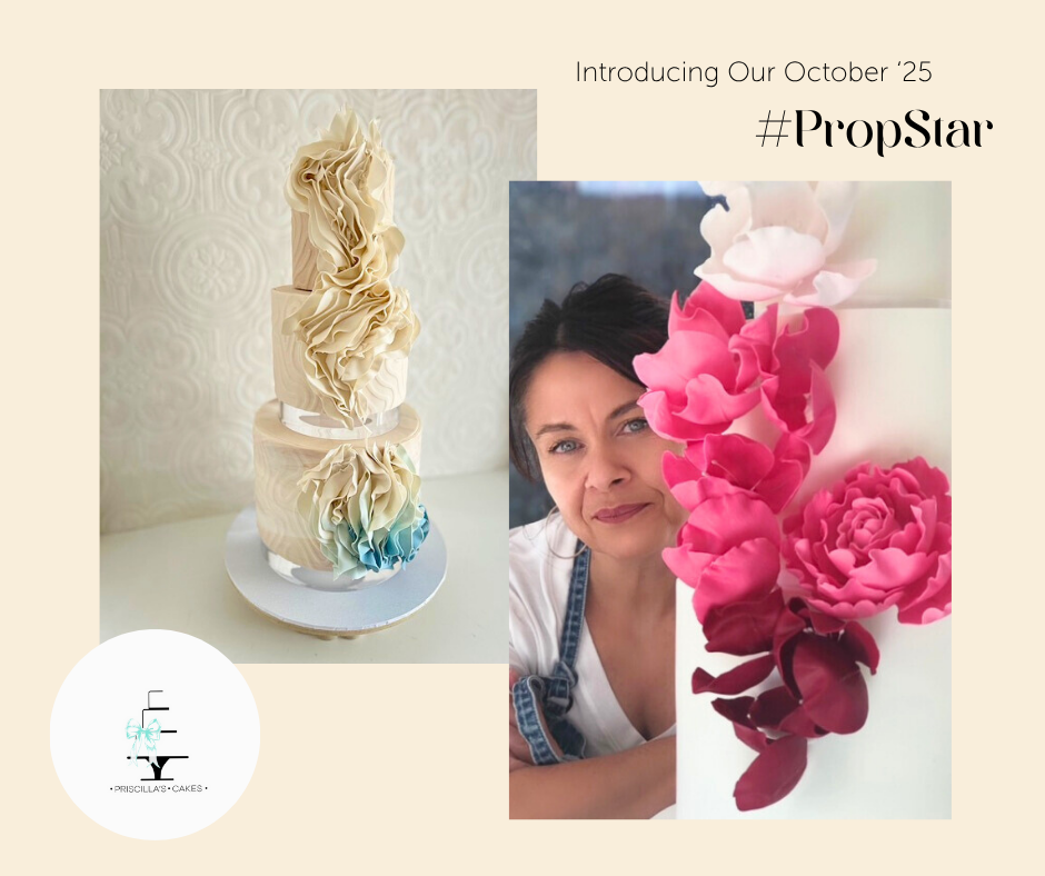 This month’s Prop Star goes to Louise Cleaver of Centrepiece Cakes, a highly respected name in the UK’s luxury wedding cake industry. With over 25 years of experience, Louise is celebrated for her breathtaking sugar flower work, elegant silhouettes, and refined attention to detail. Each of her cakes reflects her signature balance of artistry and precision, turning every commission into a showstopping centrepiece.